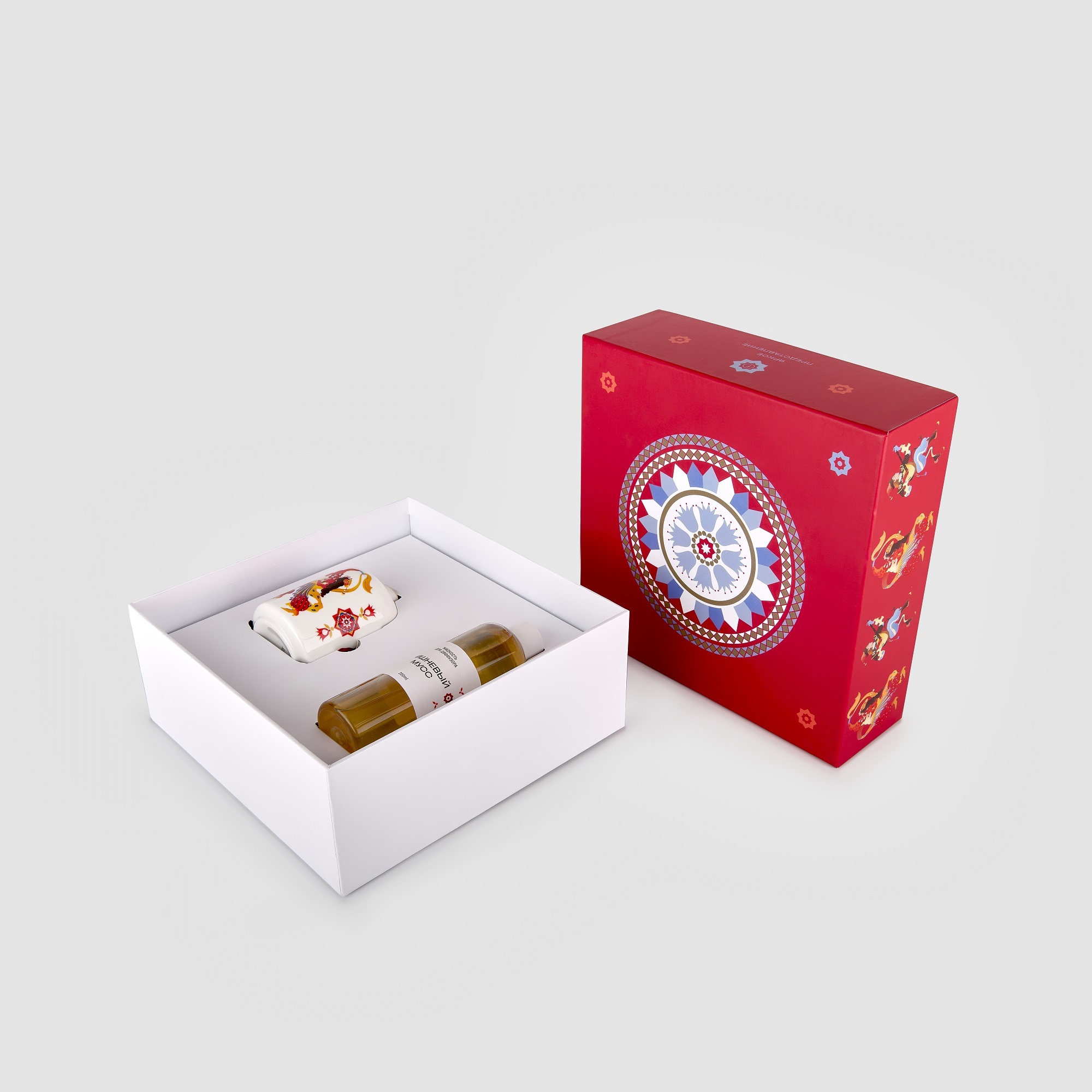 Изделие декорировано золотом. Весь комплект поставляется в подарочной коробке «крышка-дно» с матовой ламинацией.