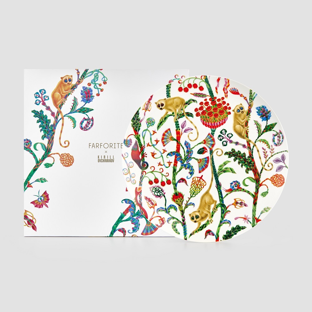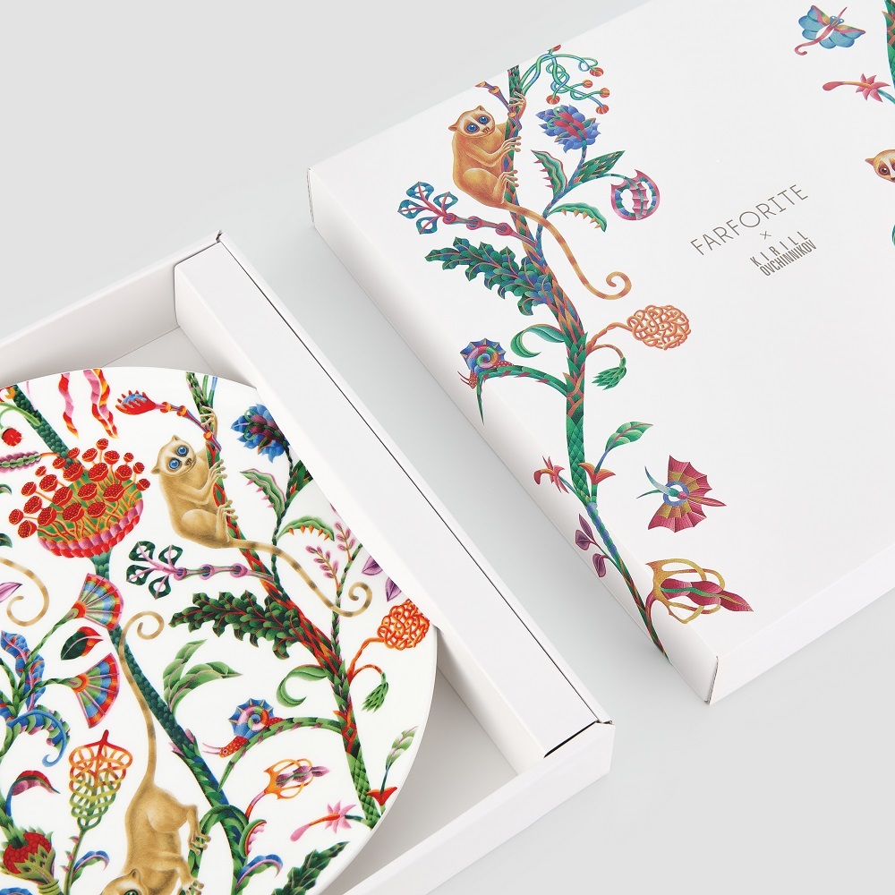 Блюдо «Лемуры» из одноименной коллекции поставляется в подарочной коробке «крышка-дно» с матовой ламинацией.