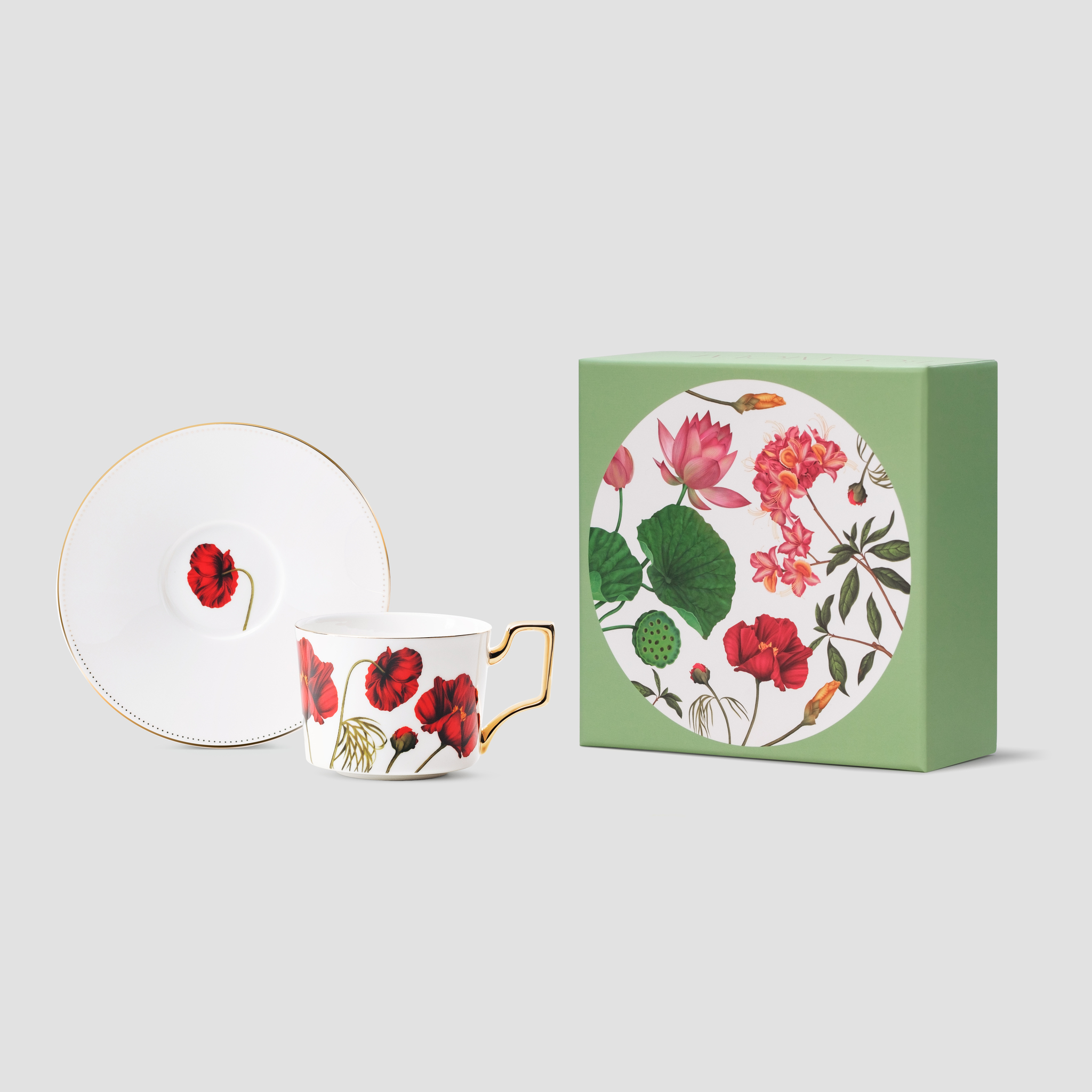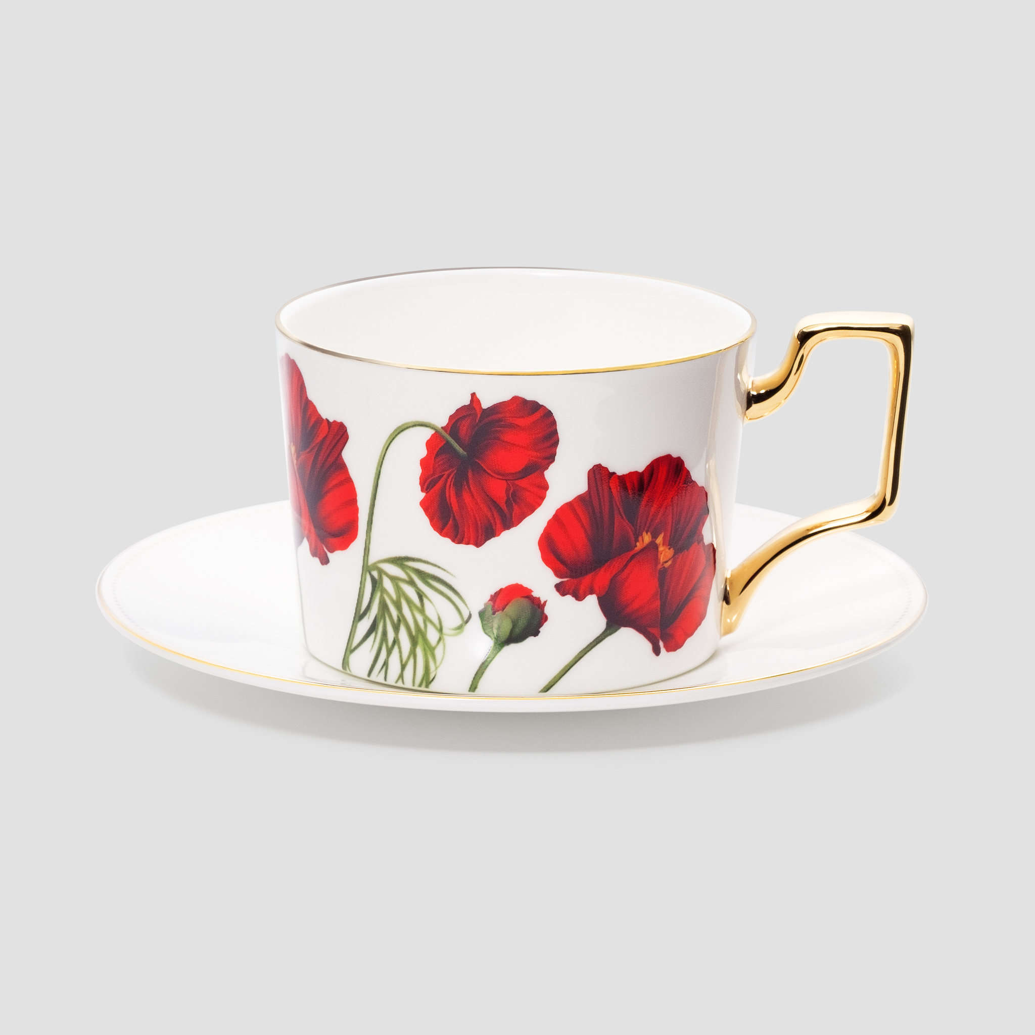 Чайная пара Farforite «Маки / Botanicum» 250 мл в подарочной коробке