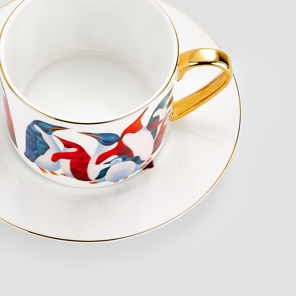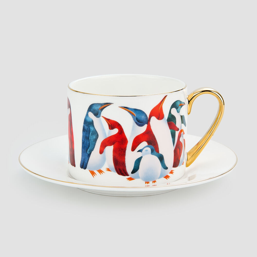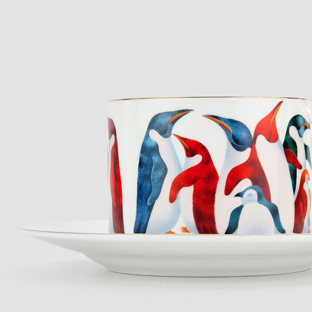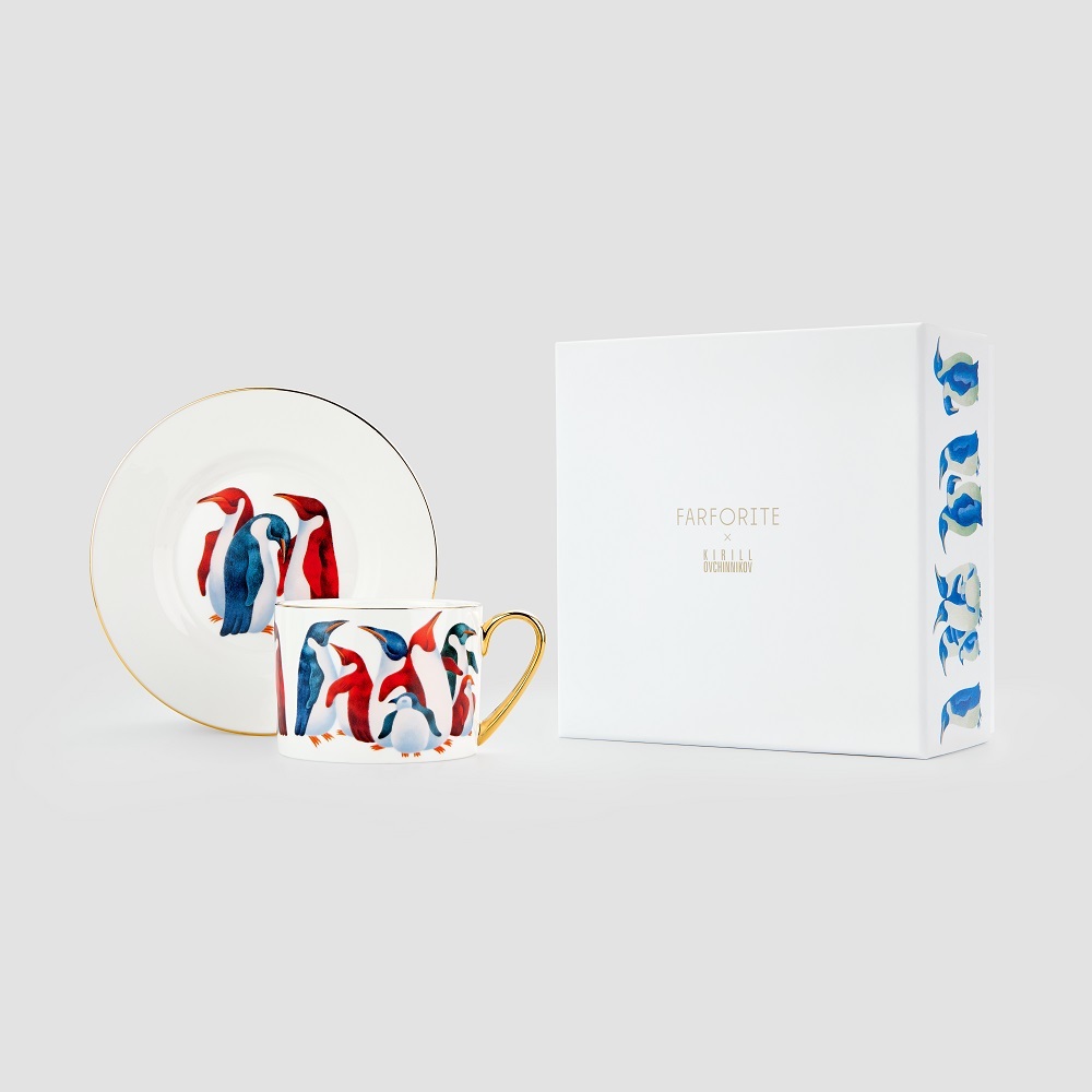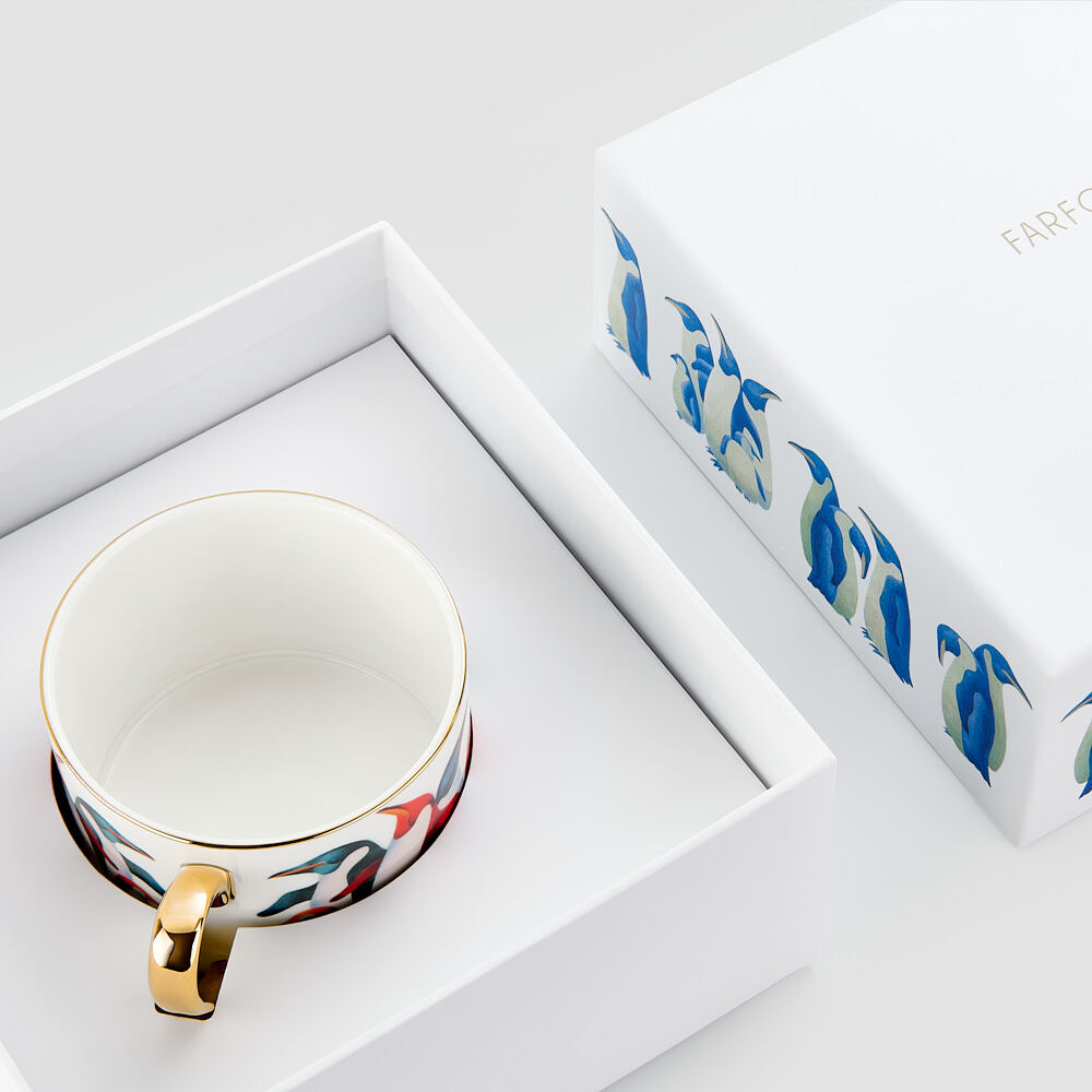 Чайная пара «Пингвины» из одноименной коллекции поставляется в подарочной коробке «крышка-дно» с матовой ламинацией.