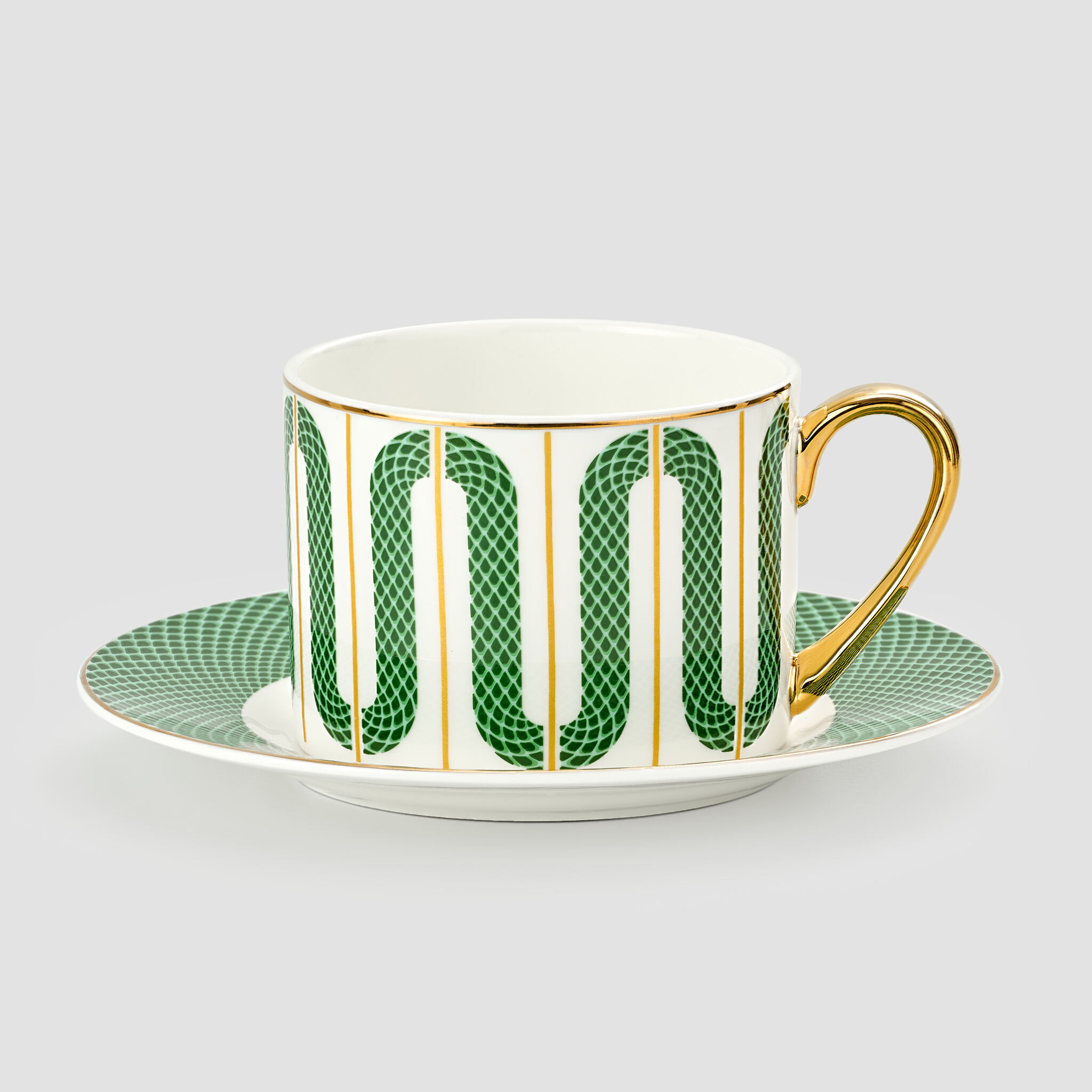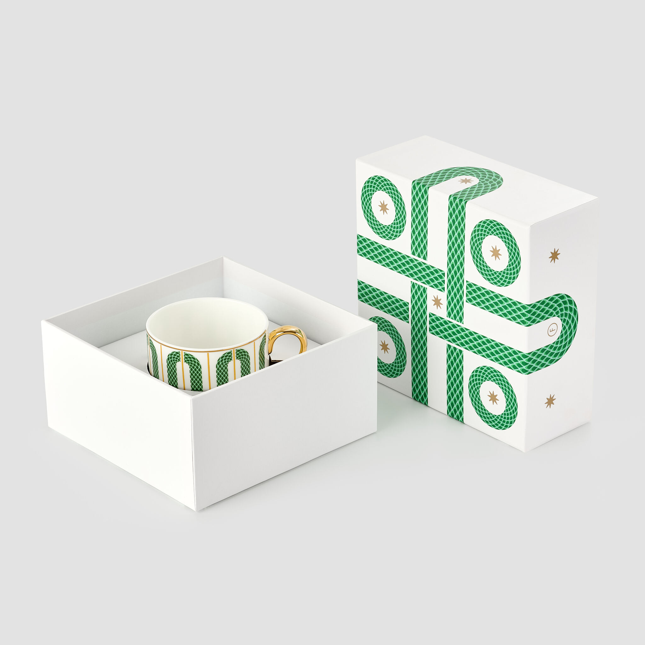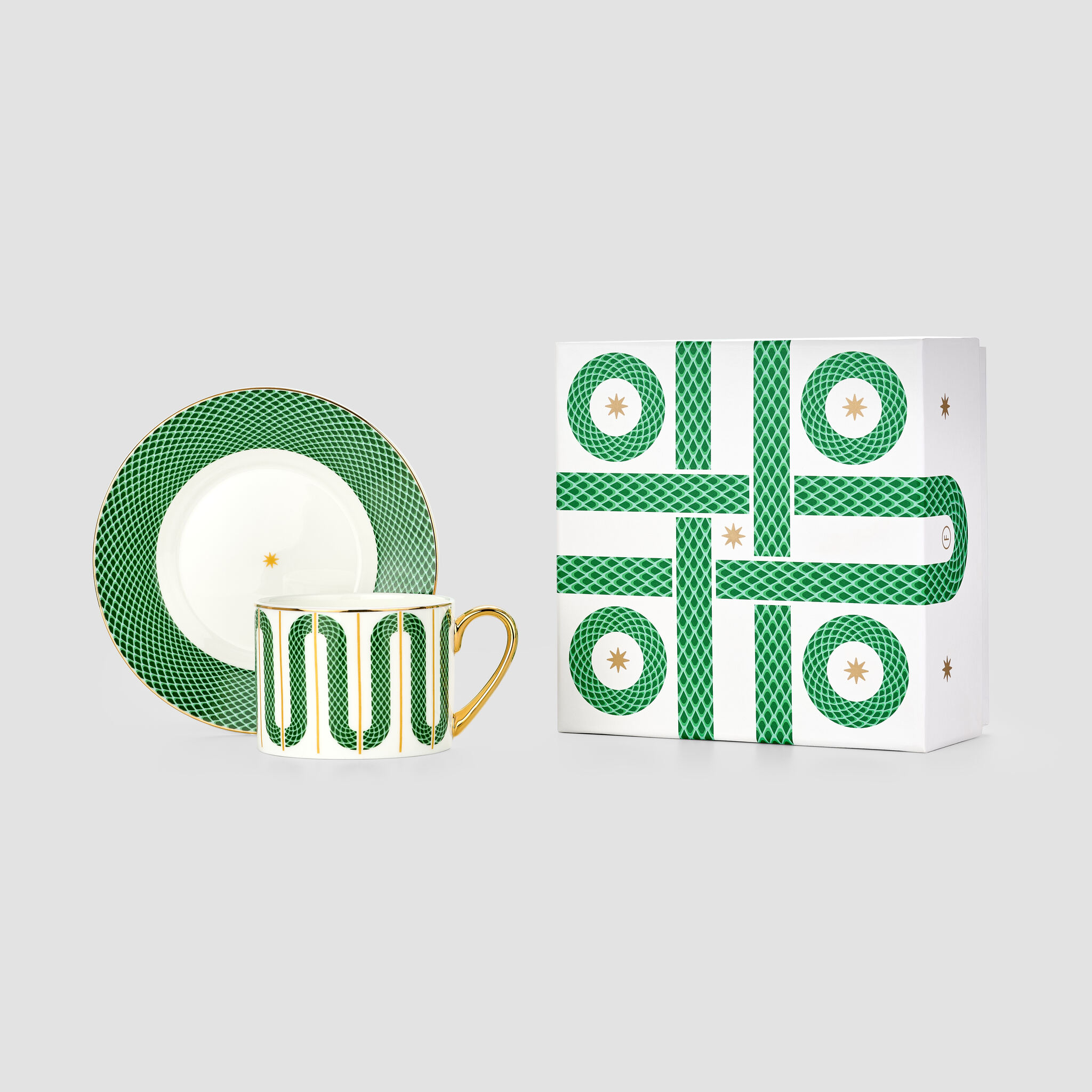 Чайная пара «Сплетено» из одноименной коллекции поставляется в подарочной коробке «крышка-дно» с матовой ламинацией.