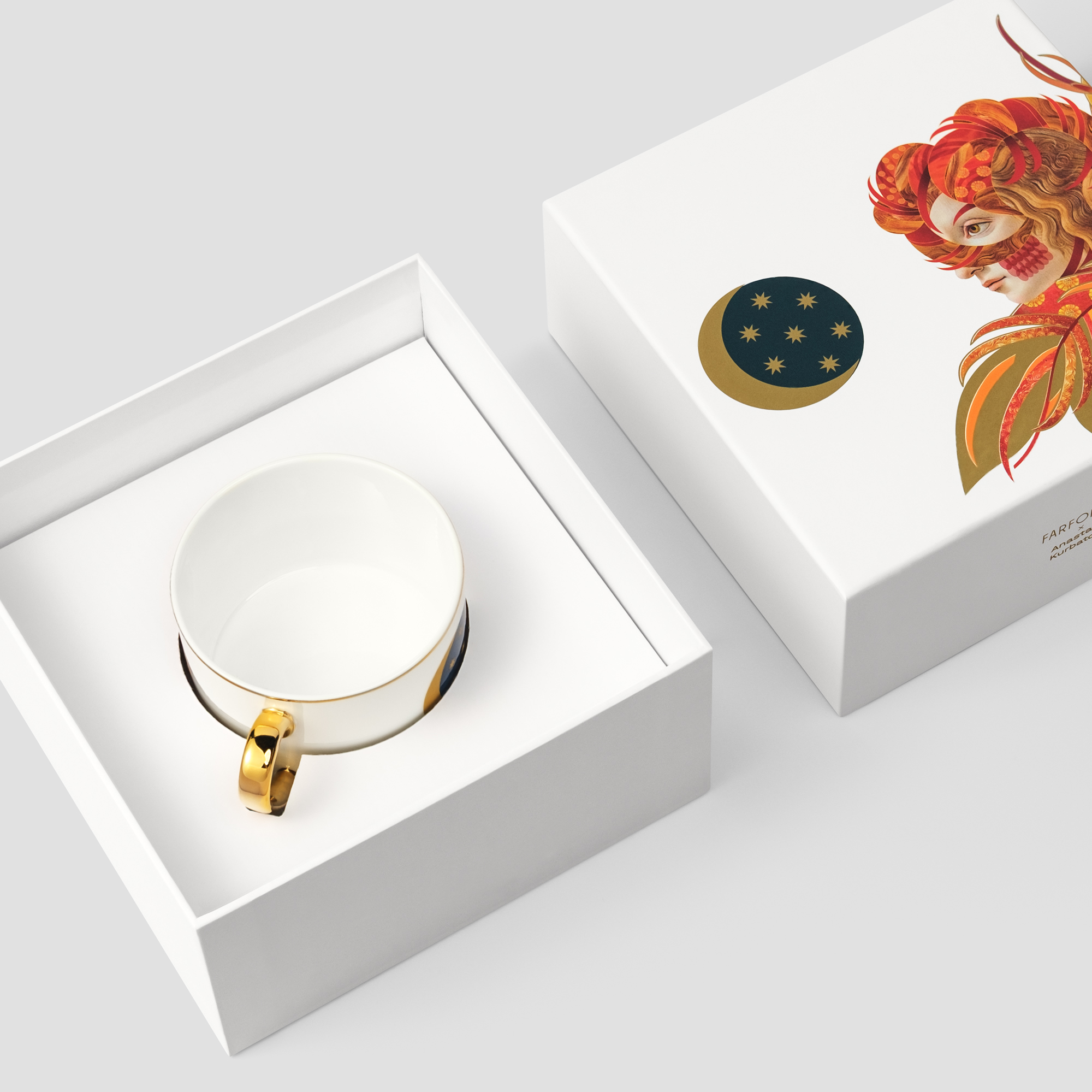 Коллекция «Жар-птица» создана совместно с театральной художницей и керамисткой Анастасией Курбатовой. Яркие образы словно оживают на фарфоре и становятся символом света и возрождения.