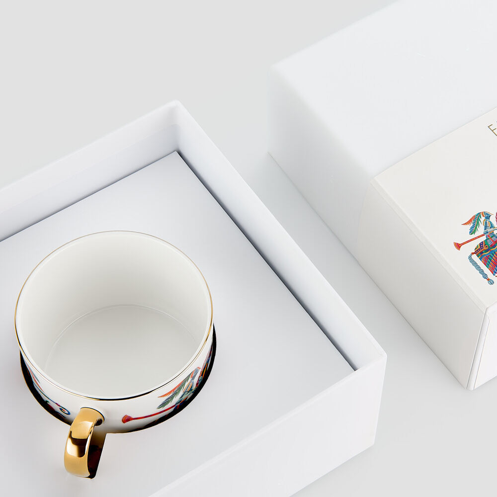 Чайная пара «Бестиарий» поставляется в подарочной коробке «крышка-дно» с матовой ламинацией.