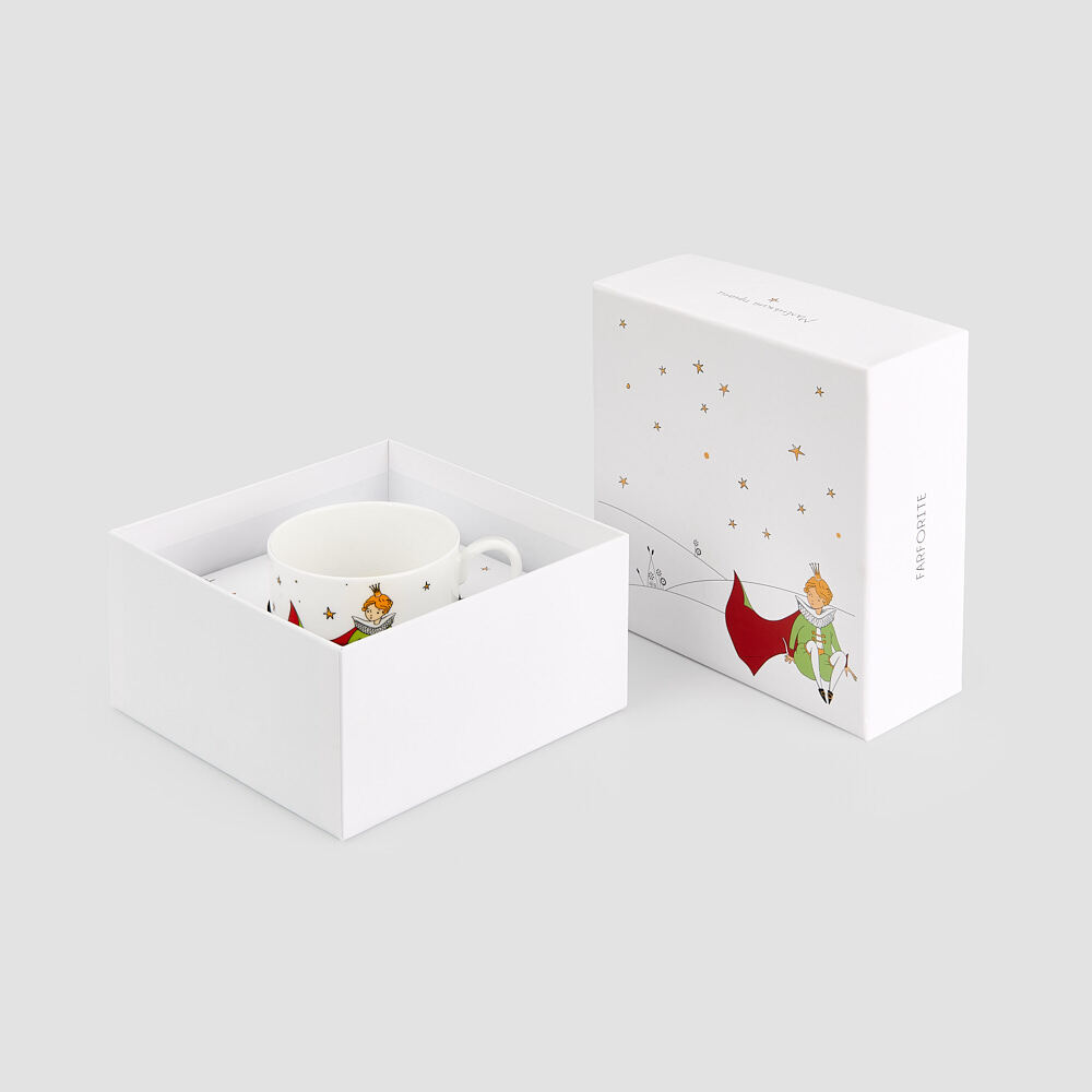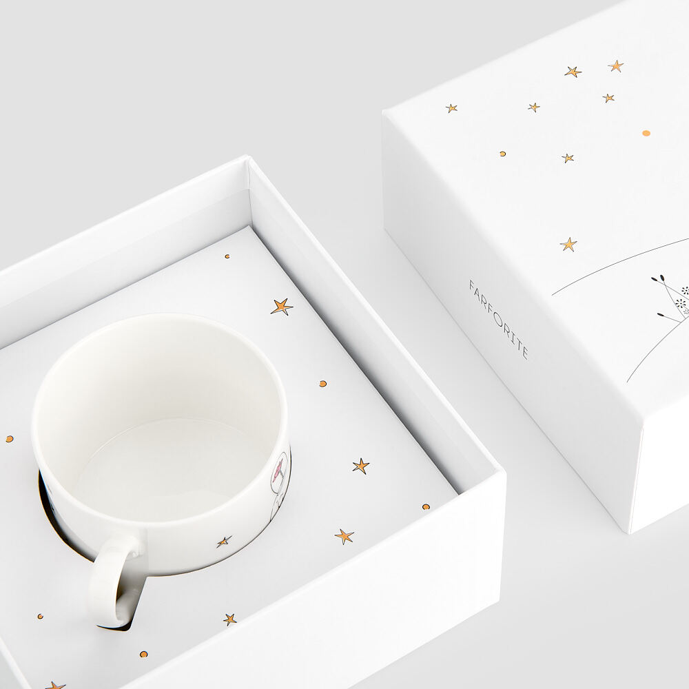 Чайная пара «Маленький принц» из одноименной коллекции поставляется в подарочной коробке «крышка-дно» с матовой ламинацией.