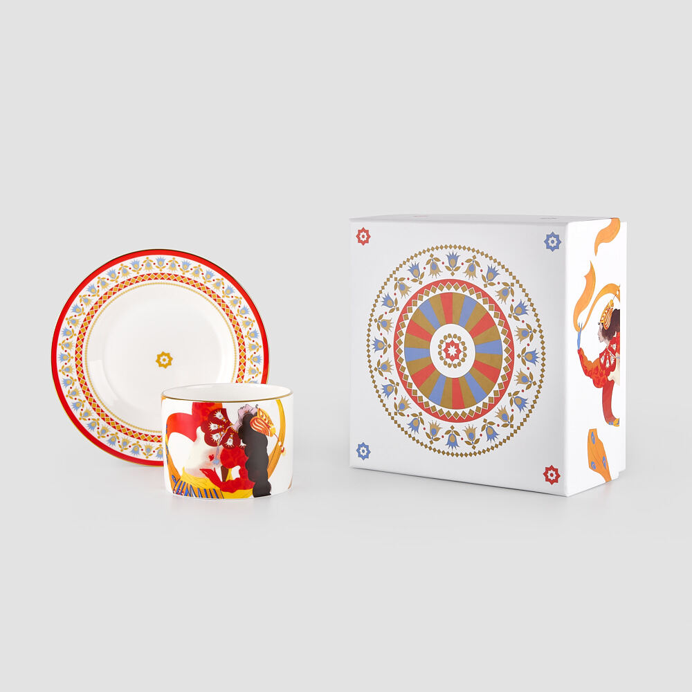 Чайная пара Farforite «Жар-птица / Яркое представление» 250 мл в подарочной коробке