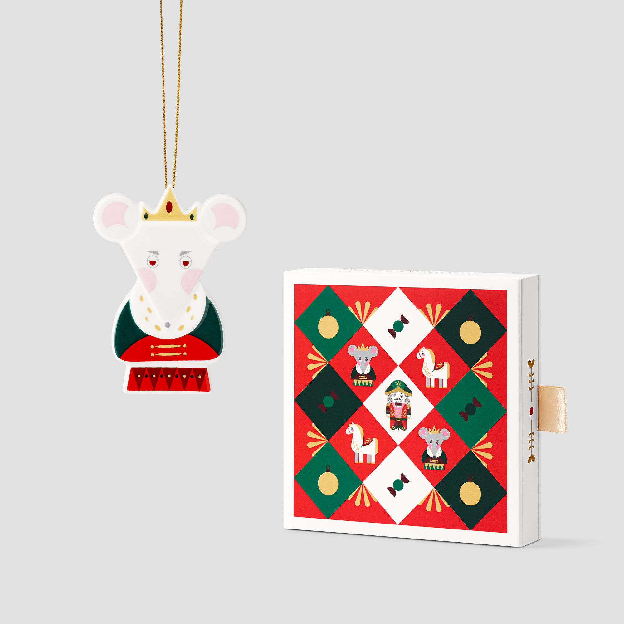 Елочная игрушка «Мышиный король» из коллекции «Щелкунчик рождественский» поставляется в подарочной коробке-пенале с матовой ламинацией.