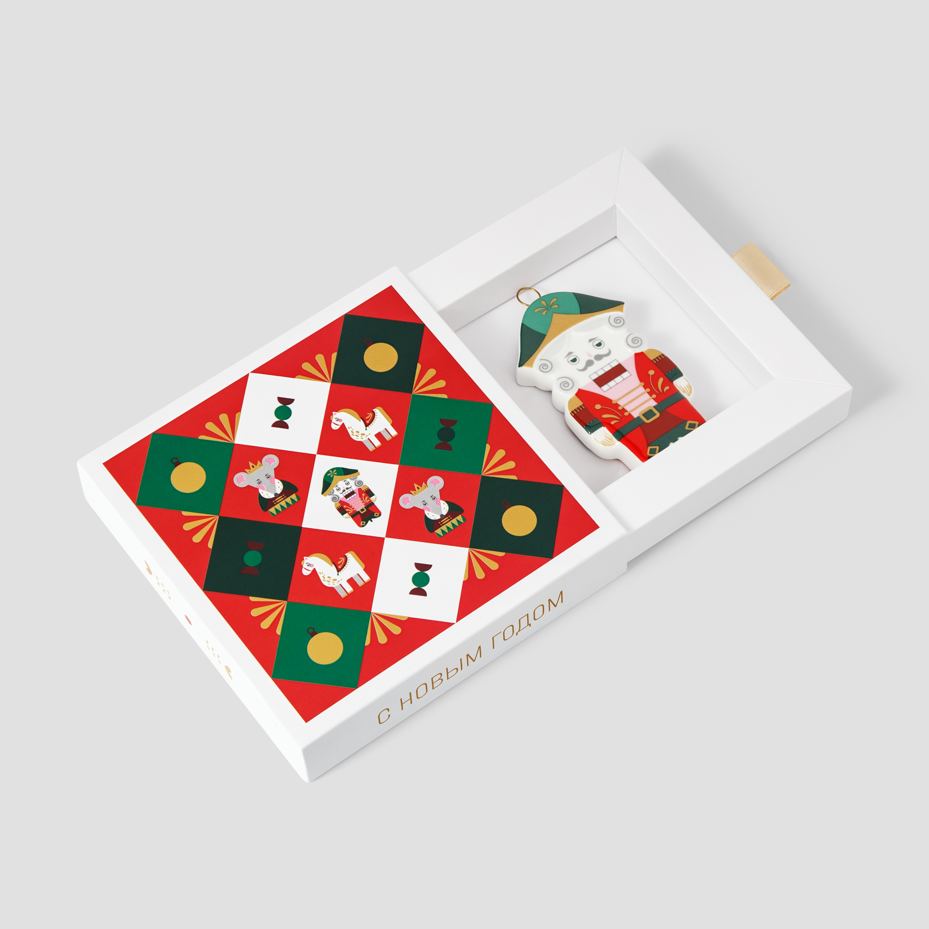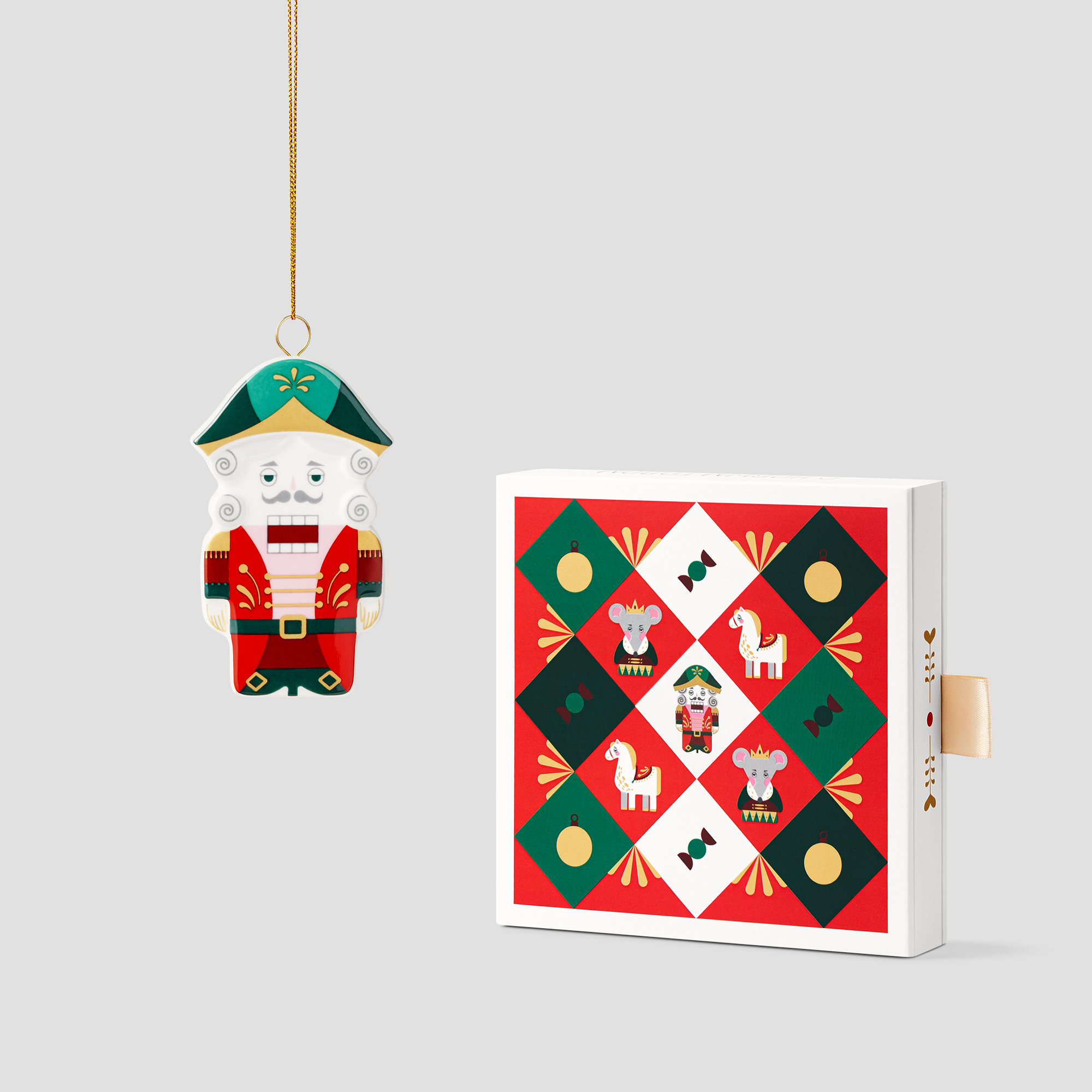 Елочная игрушка «Щелкунчик рождественский» из одноименной коллекции поставляется в подарочной коробке-пенале с матовой ламинацией.