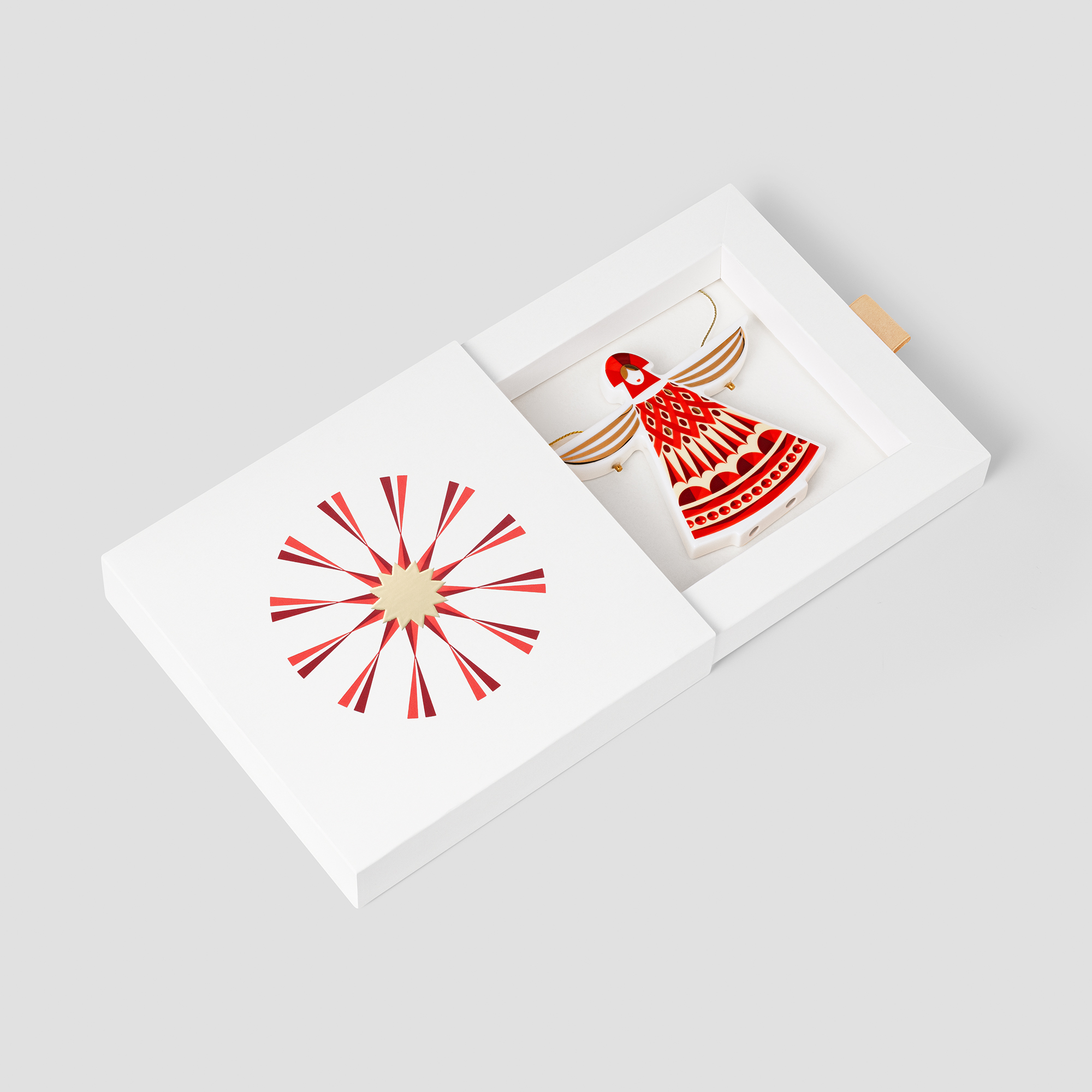 Елочная игрушка «Дама» из коллекции «Солнечный круг» поставляется в подарочной коробке-пенале с матовой ламинацией.