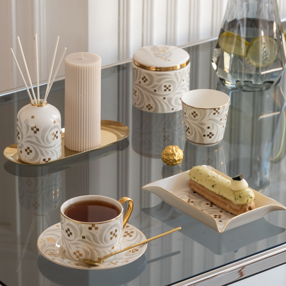 Изделие декорировано золотом. Цвет — серый с золотым.