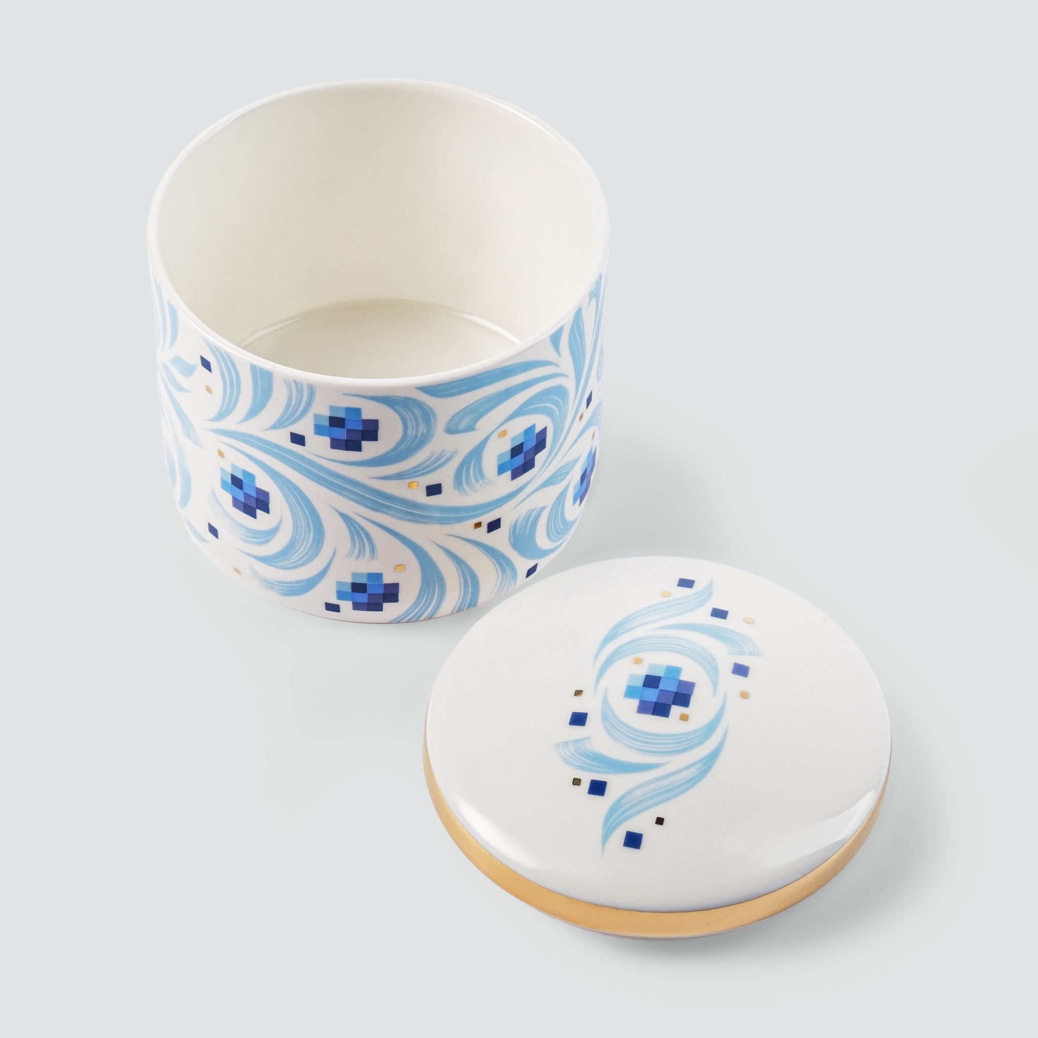 Емкость для хранения «Фольклор» из одноименной коллекции поставляется в подарочном тубусе с матовой ламинацией.