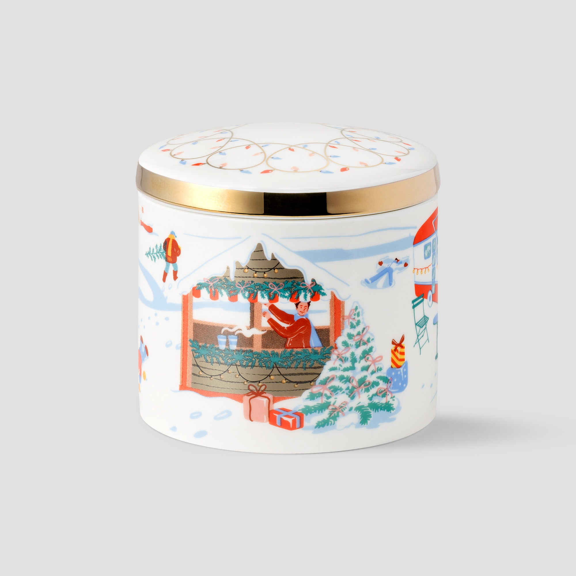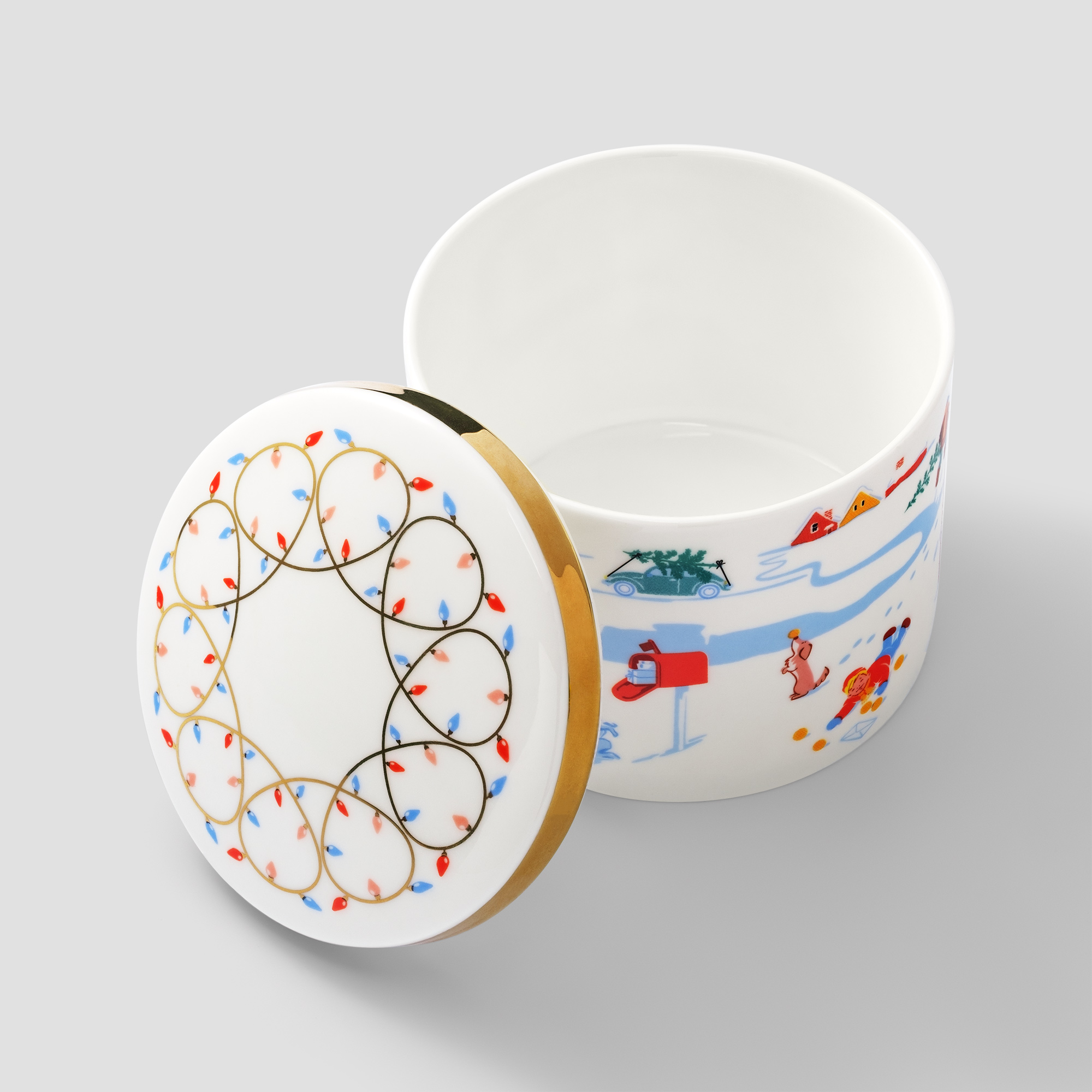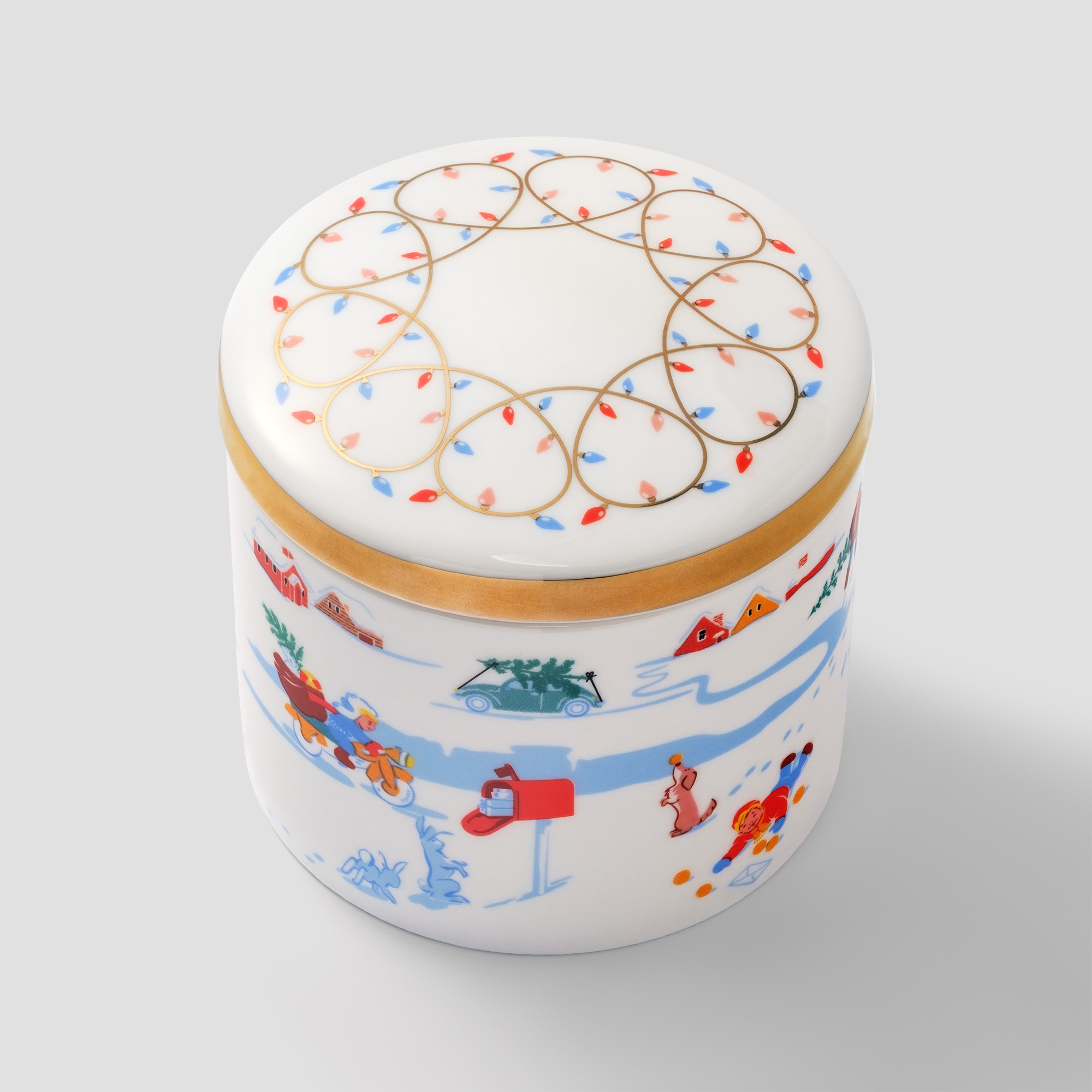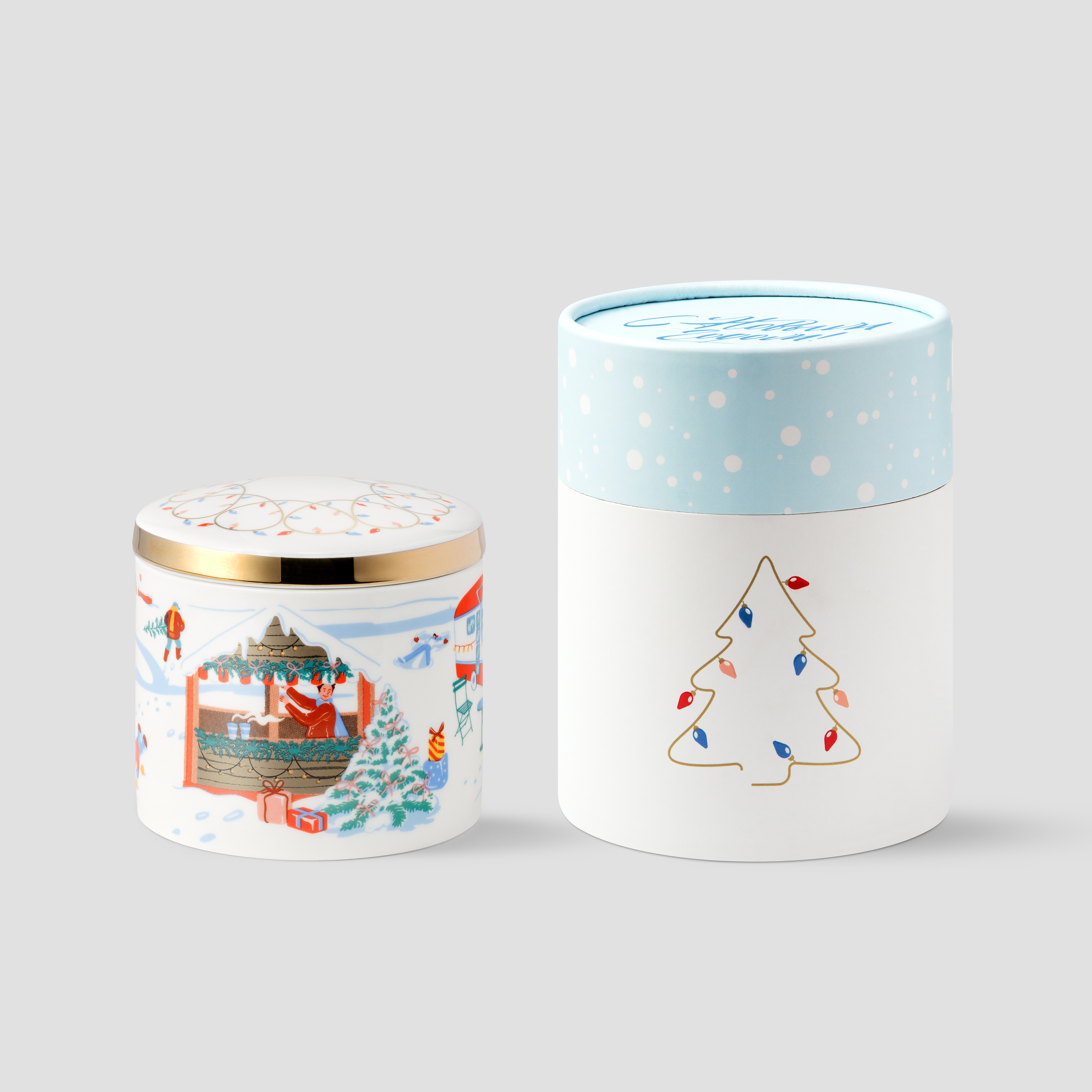 Емкость для хранения «Новогодний сюжет» из одноименной коллекции поставляется в подарочном тубусе-футляре с матовой ламинацией.