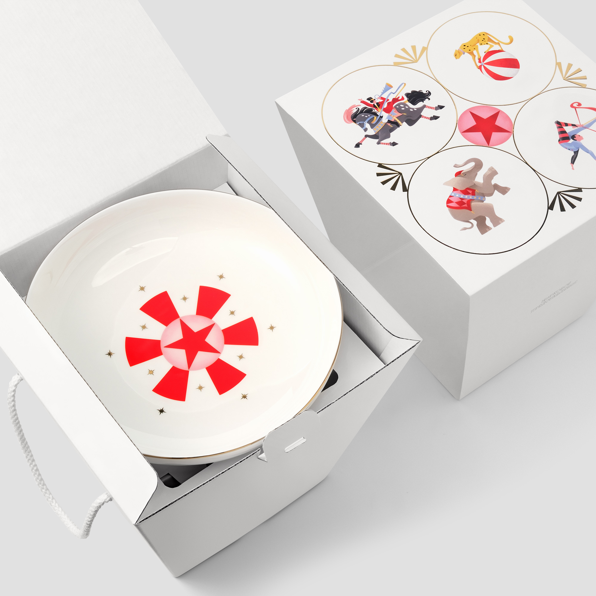 Мультиваза-боул «Цирковое представление» из одноименной коллекции поставляется в подарочной коробке с матовой ламинацией и ручками.