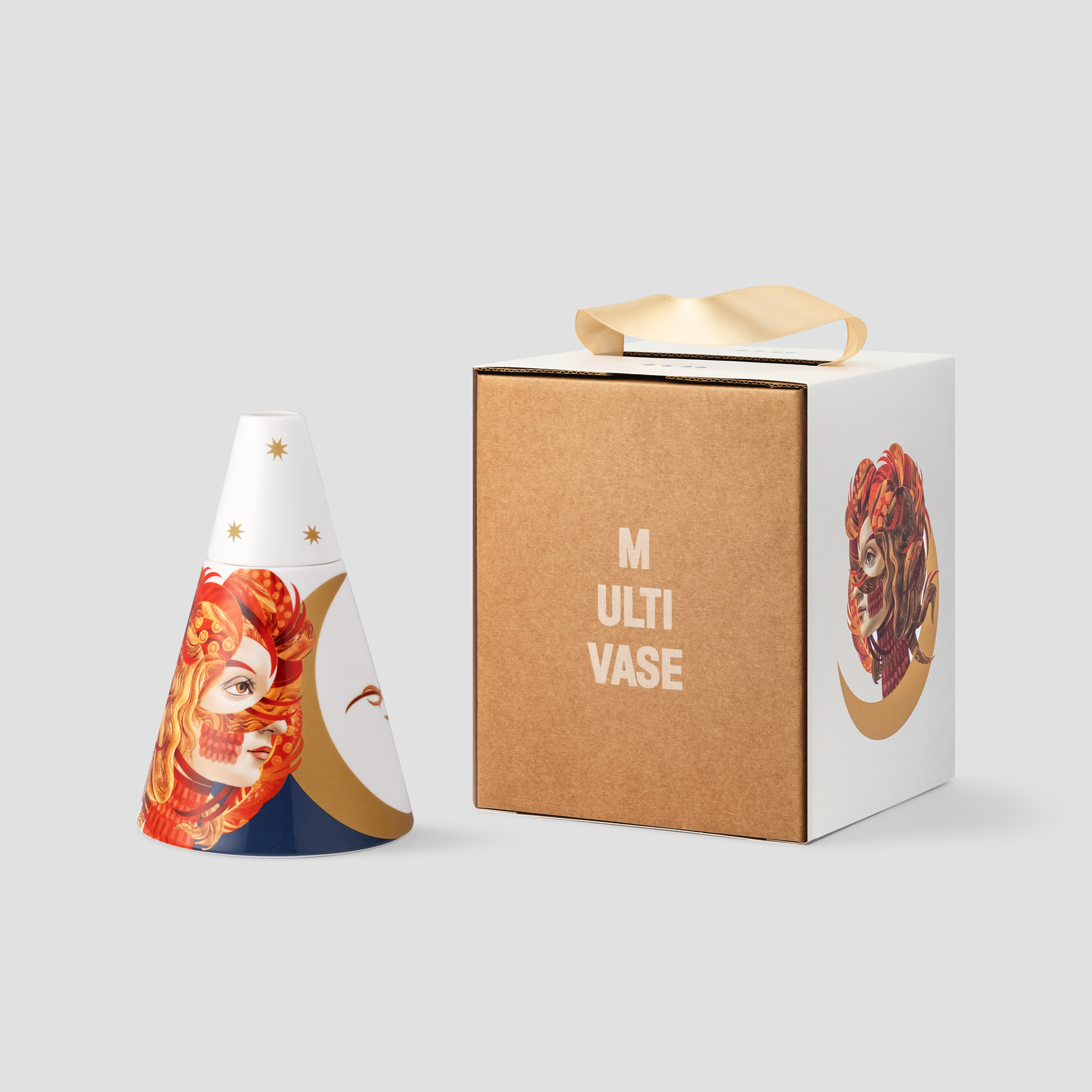 Мультиваза «Жар-птица» из одноименной коллекции поставляется в подарочной коробке с матовой ламинацией и ручкой-лентой.