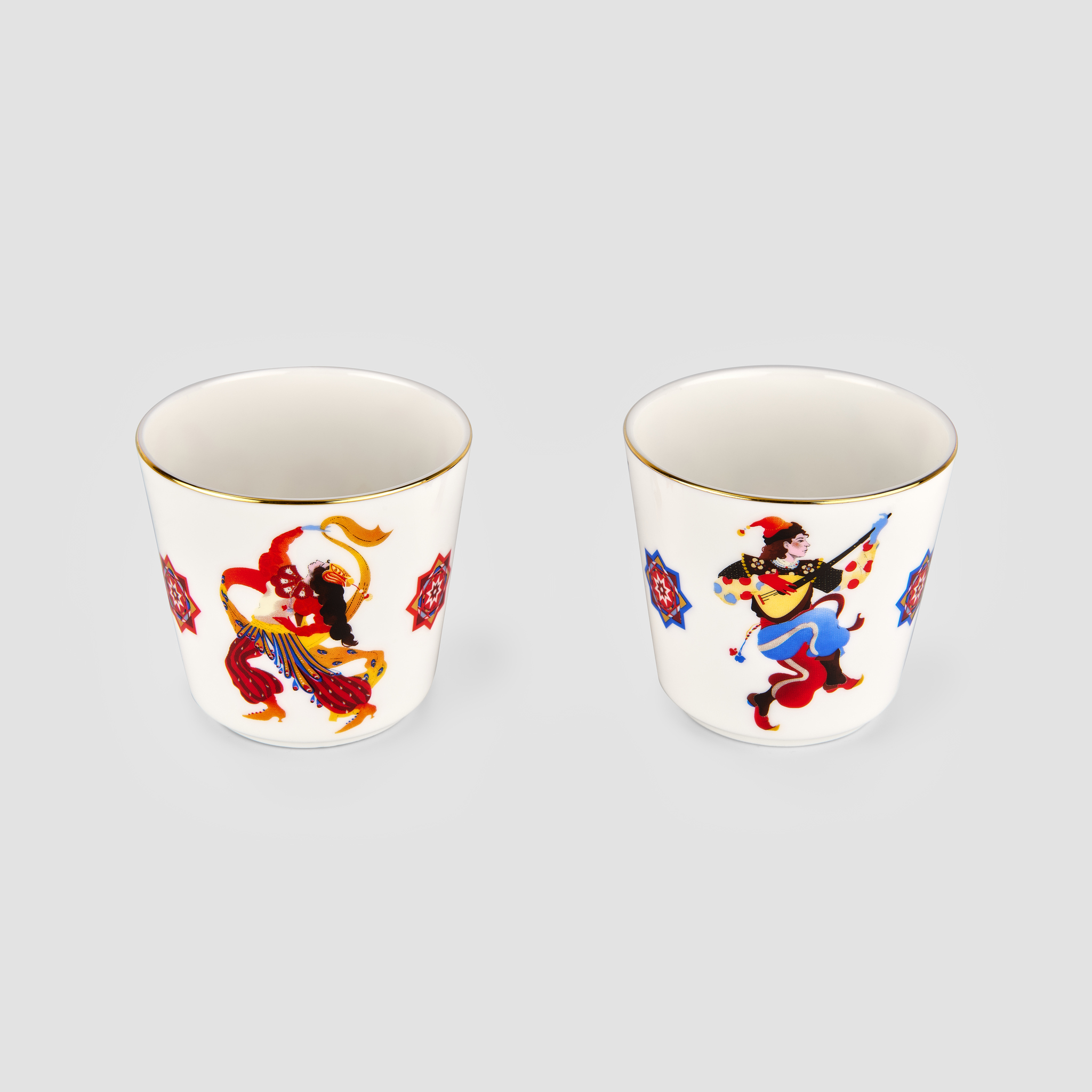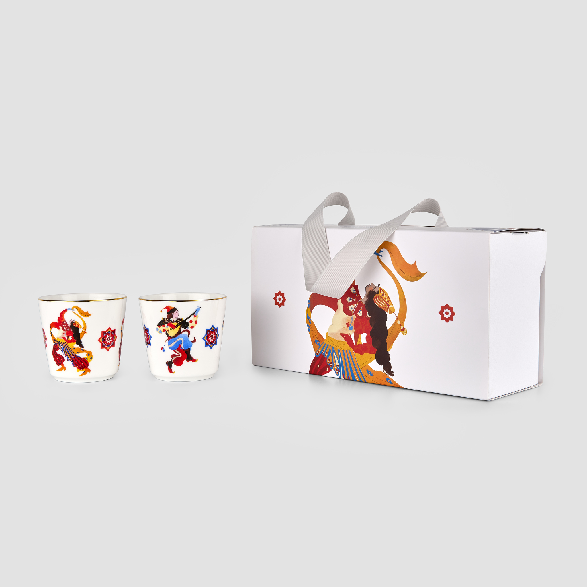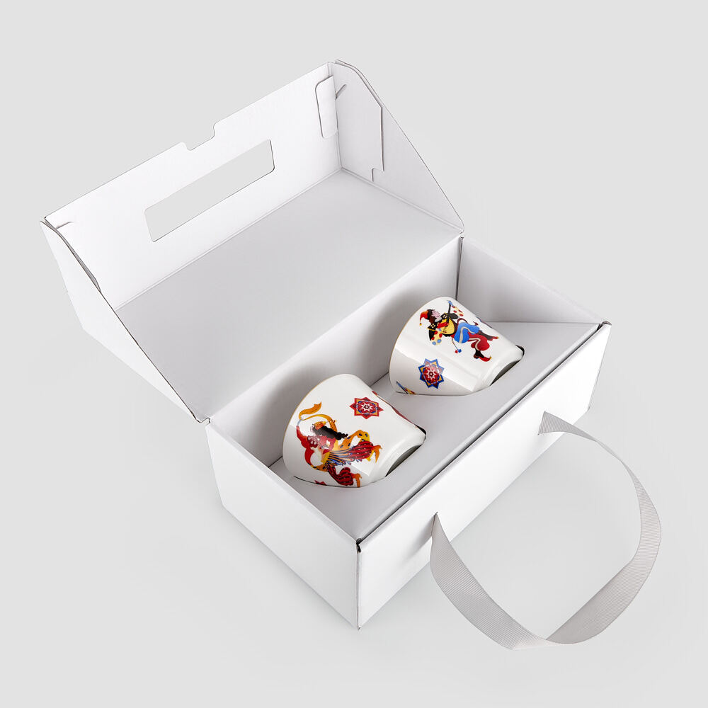 Набор из 2 кофейных стаканов «Яркое представление» из одноименной коллекции поставляется в подарочной коробке с ручкой-лентой и матовой ламинацией.