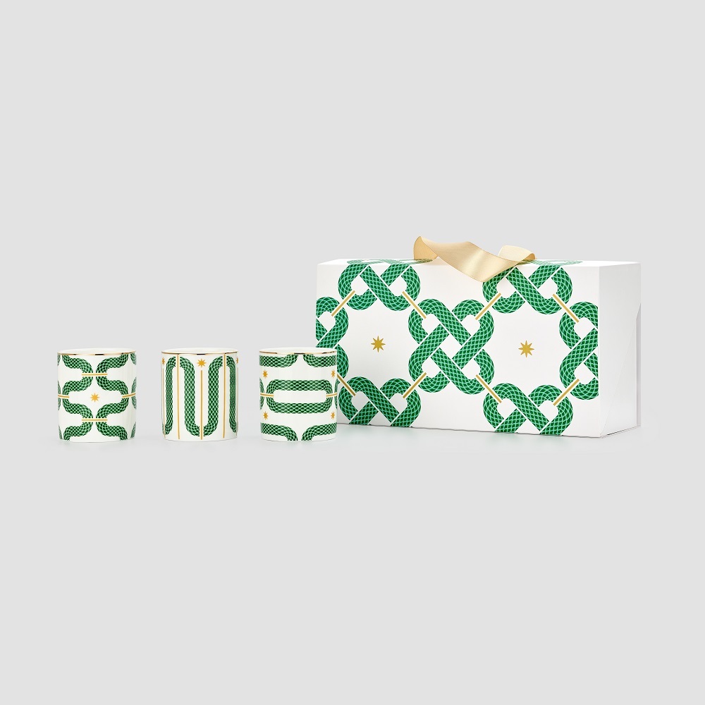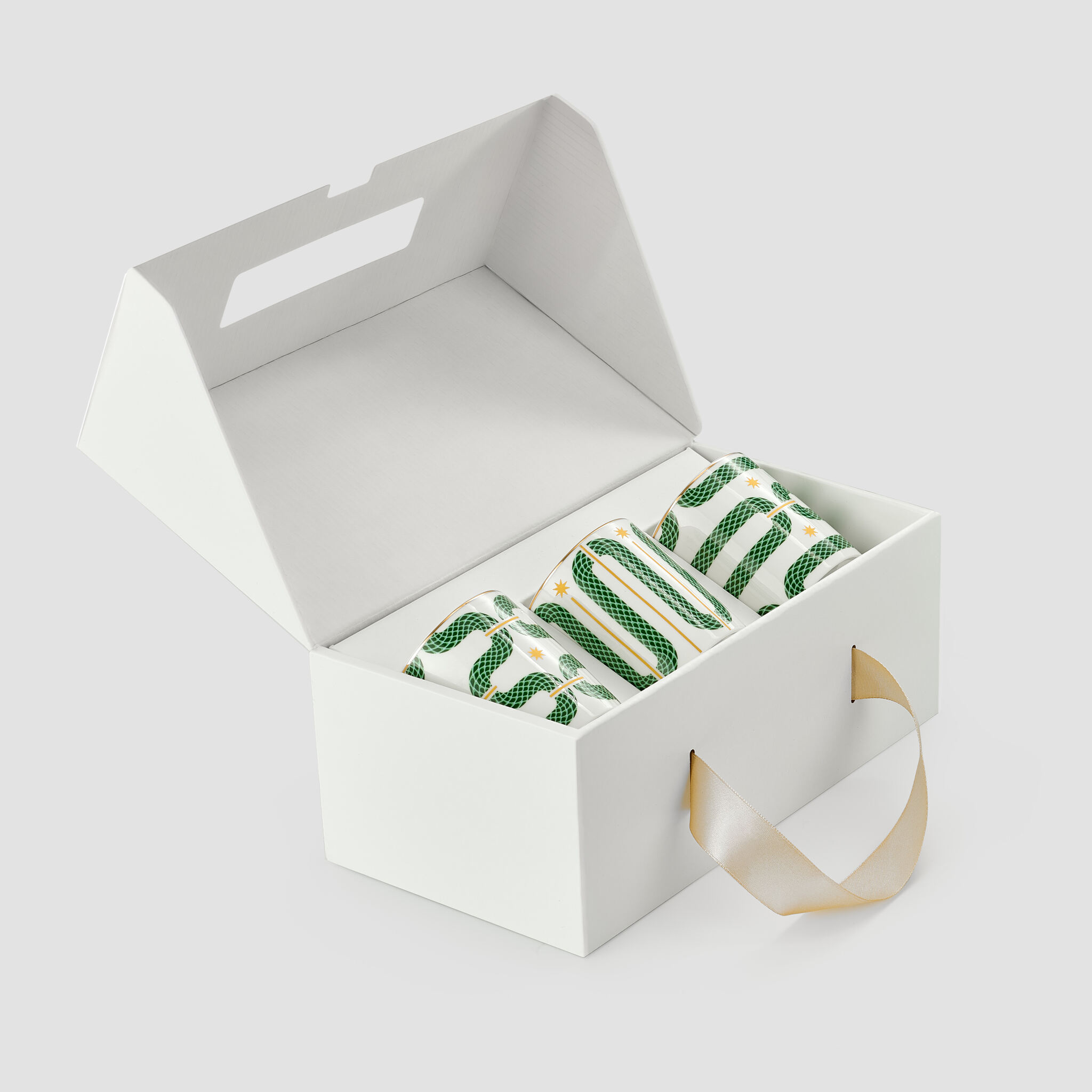 Набор из 3 стаканов «Сплетено» из одноименной коллекции поставляется в подарочной коробке с ручкой-лентой и матовой ламинацией.