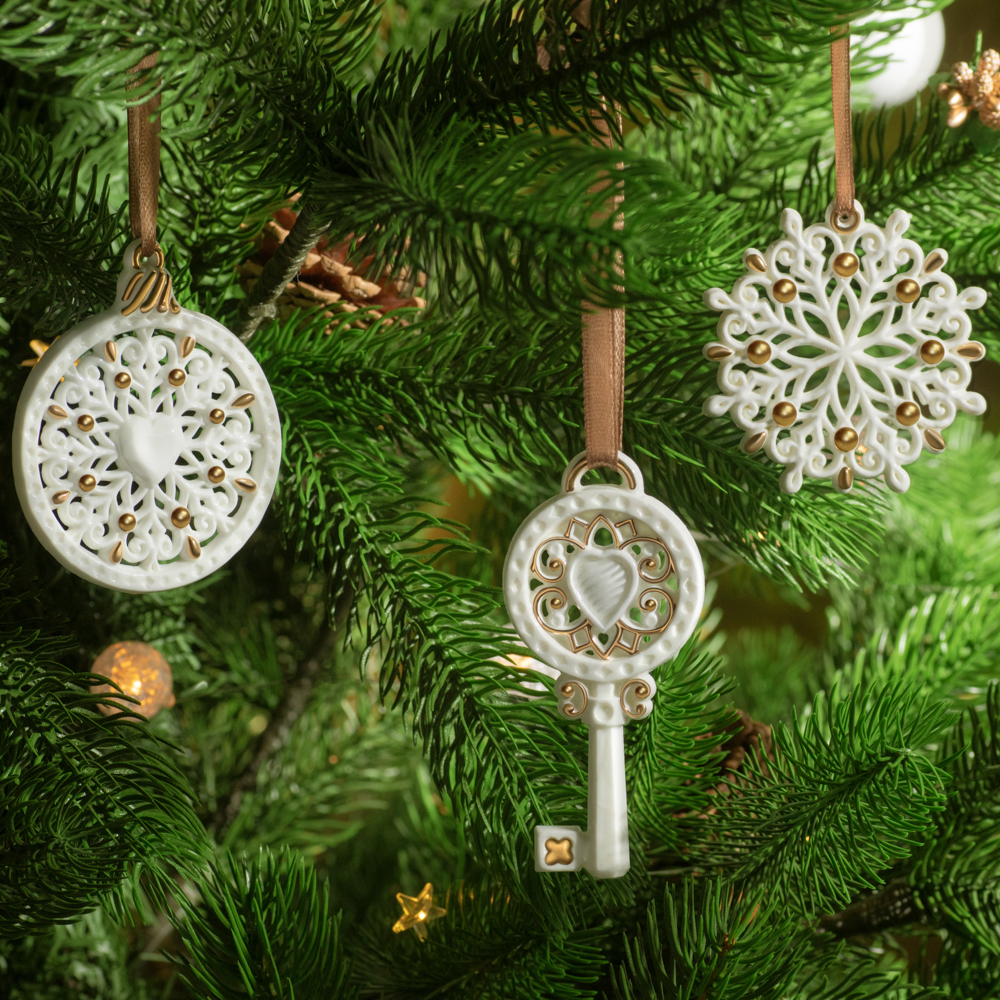 Набор из 3 елочных игрушек Farforite «Сокровища зимы» в подарочной коробке