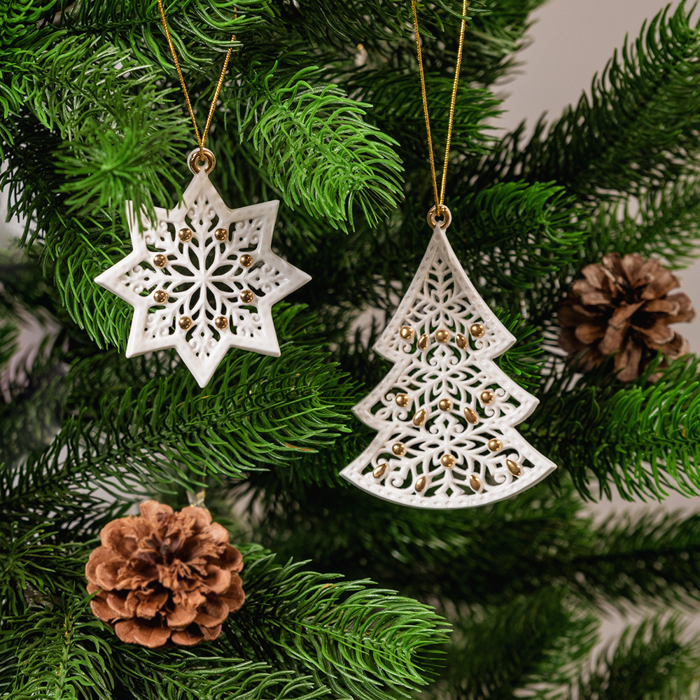 Набор из 3 елочных игрушек Farforite «Зимнее кружево» в подарочной коробке