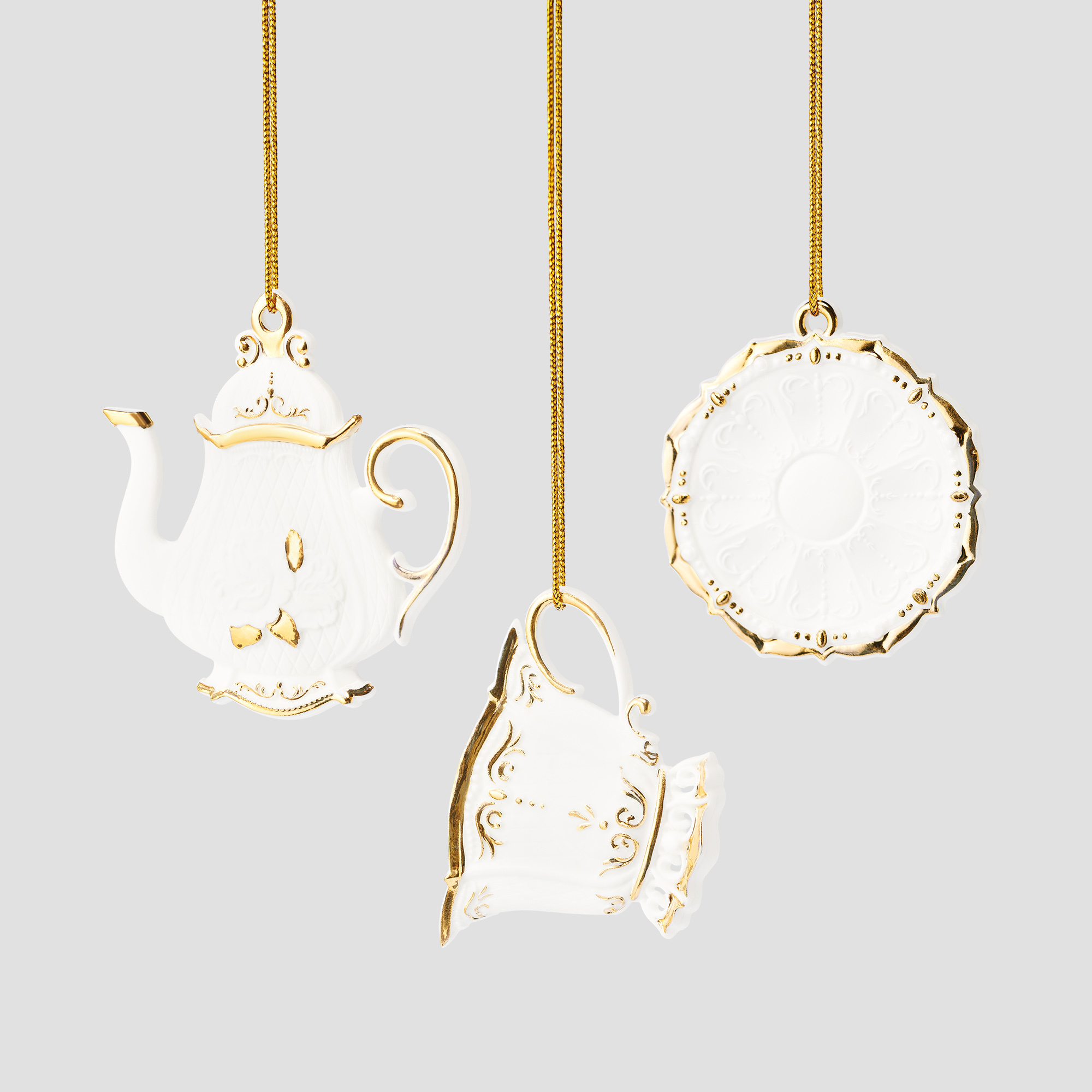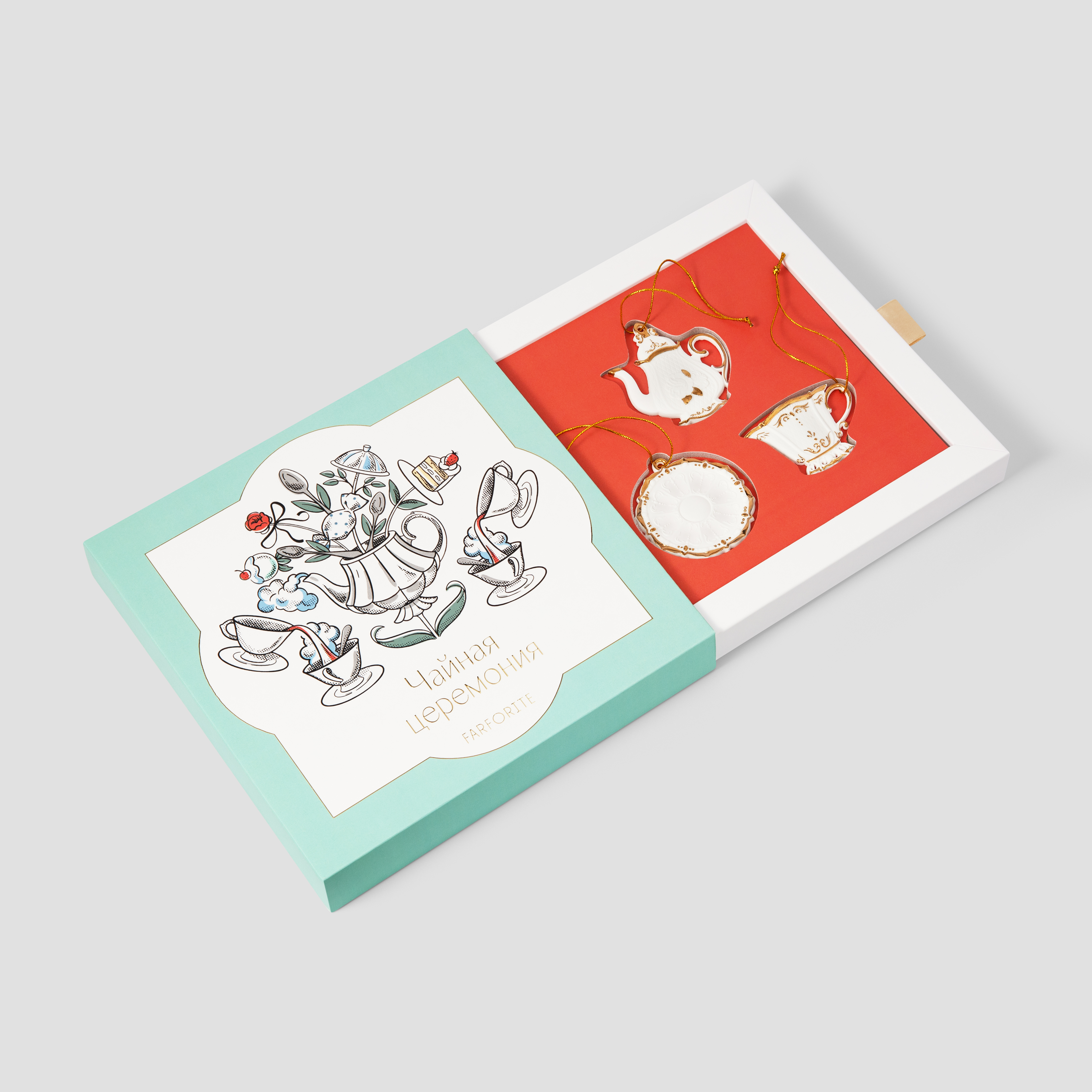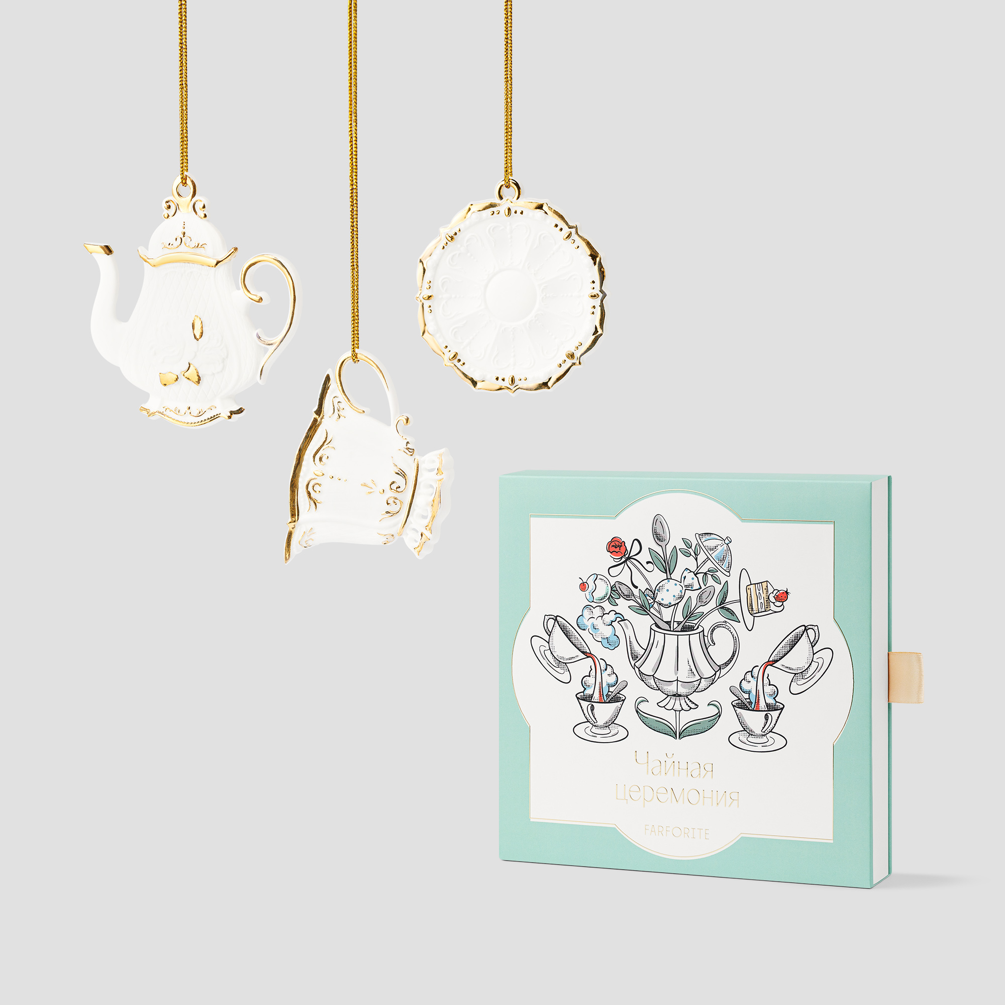 Набор из 3 елочных игрушек «Чайная церемония»: «Чайничек», «Чашечка», «Блюдце» в подарочном пенале