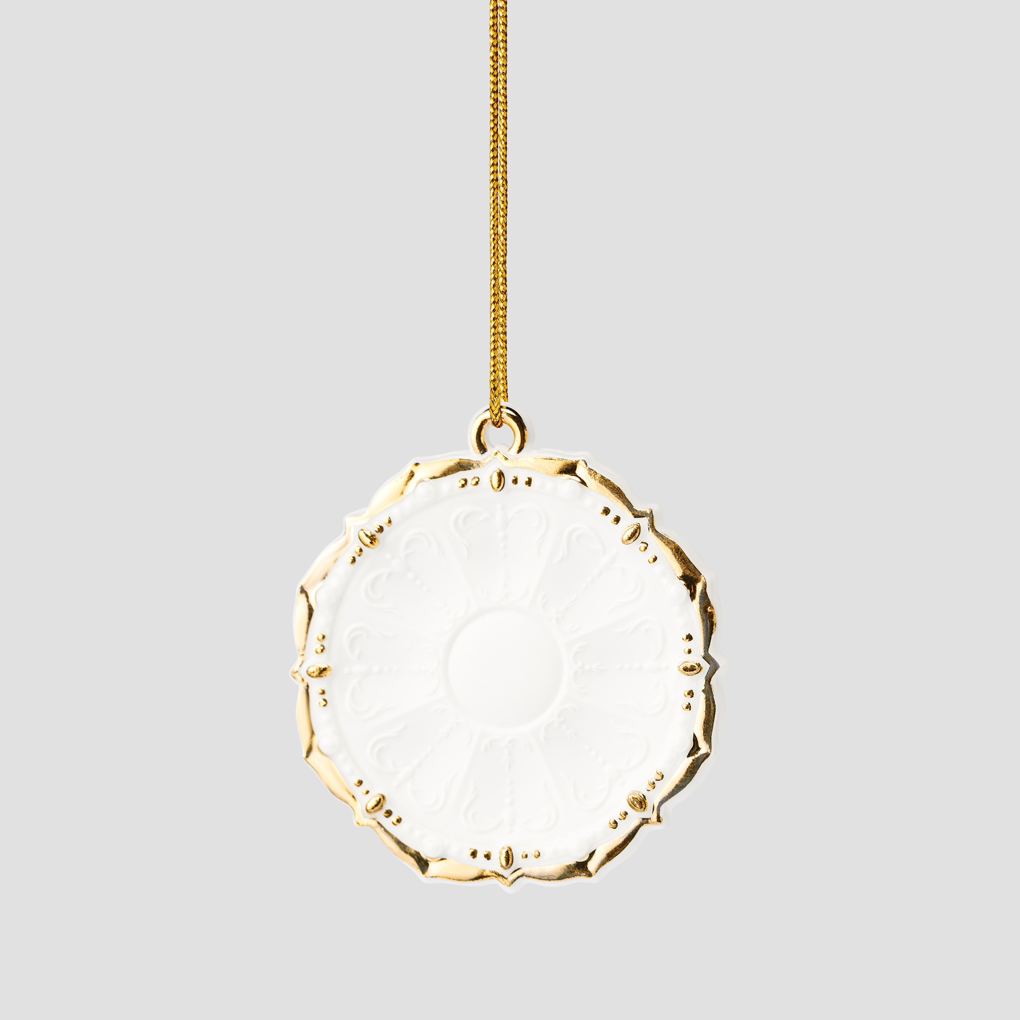 Изделия вручную расписаны золотом. У каждой игрушки предусмотрено крепление со шнуром золотого цвета.