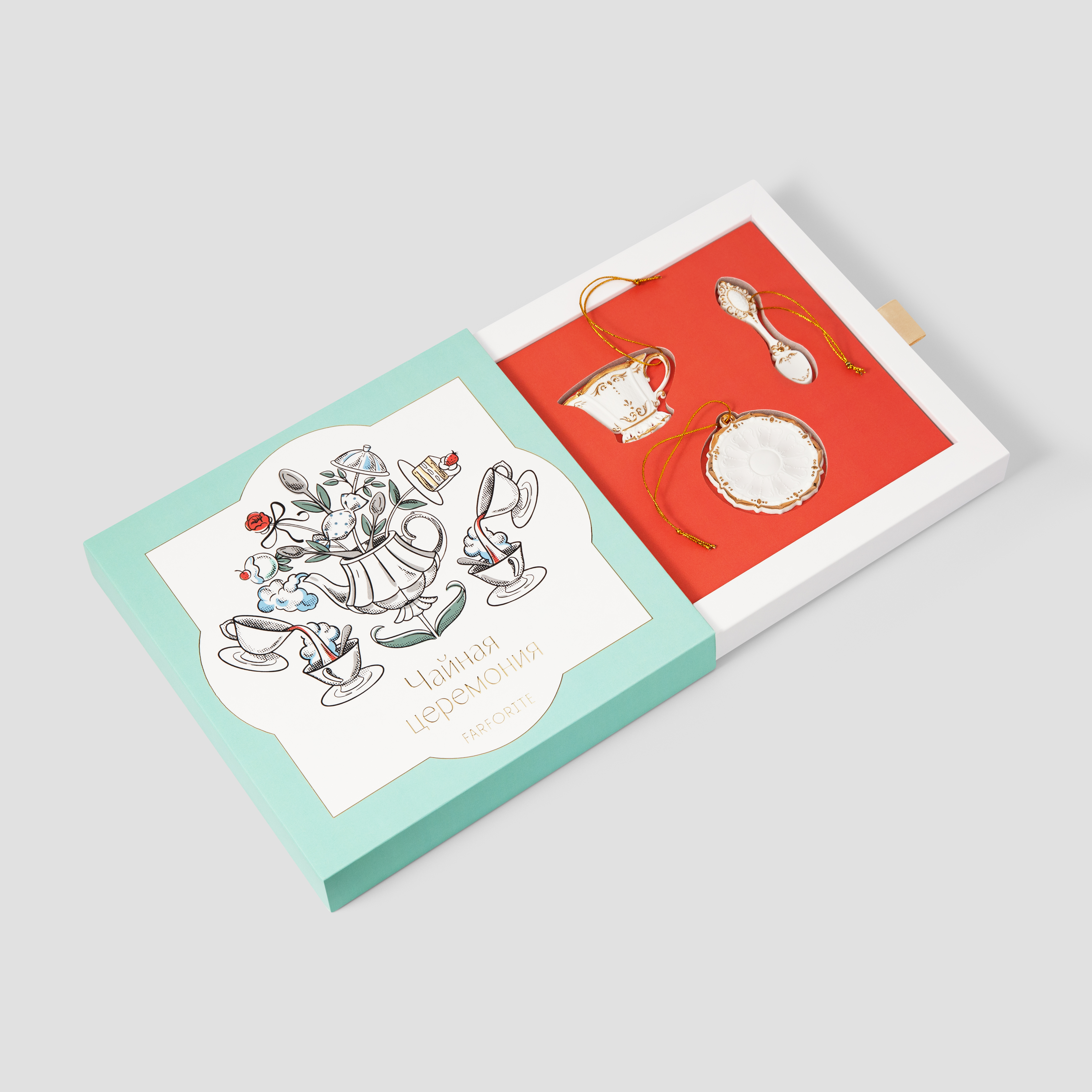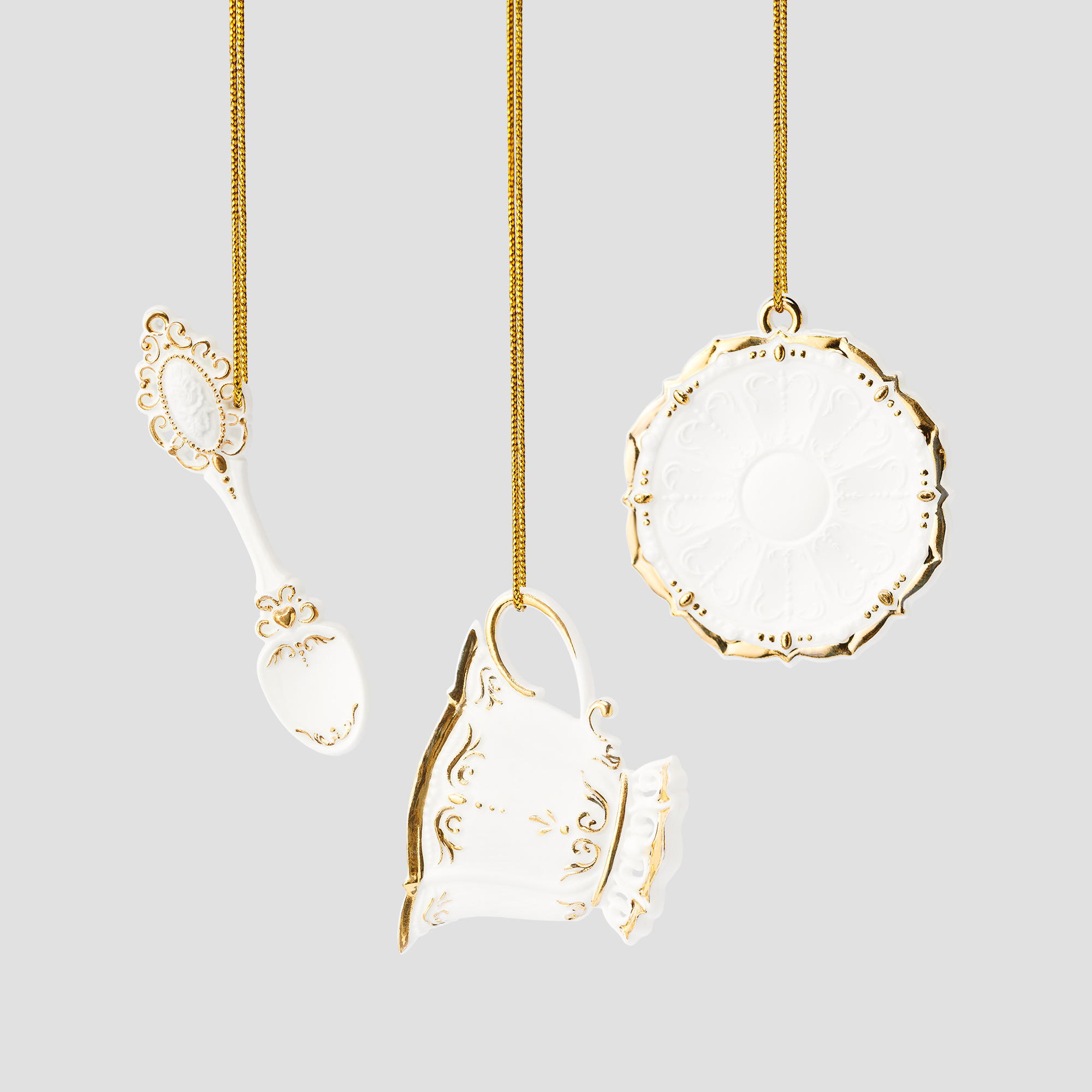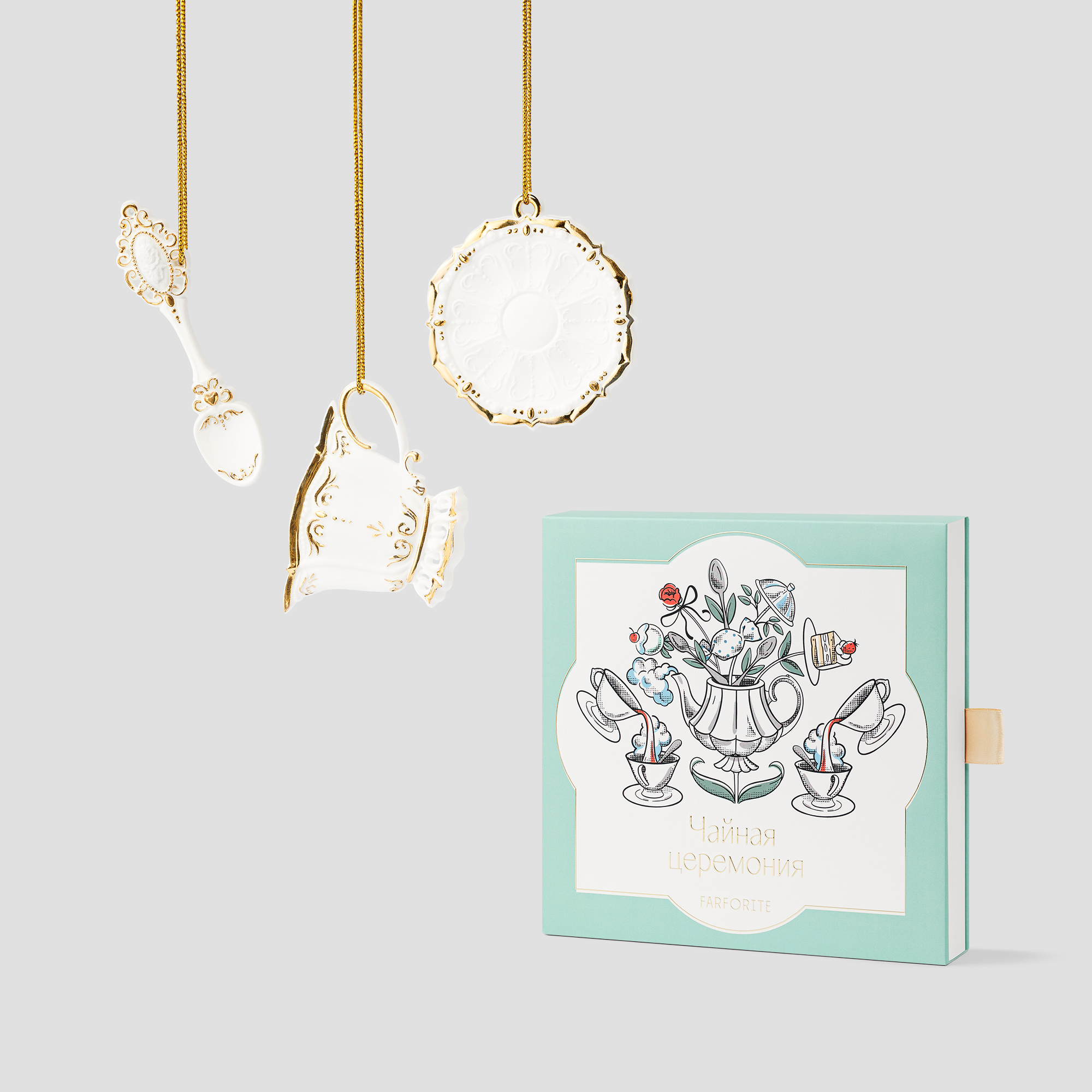 Набор из 3 елочных игрушек «Чайная церемония»: «Ложечка», «Чашечка», «Блюдце» в подарочном пенале
