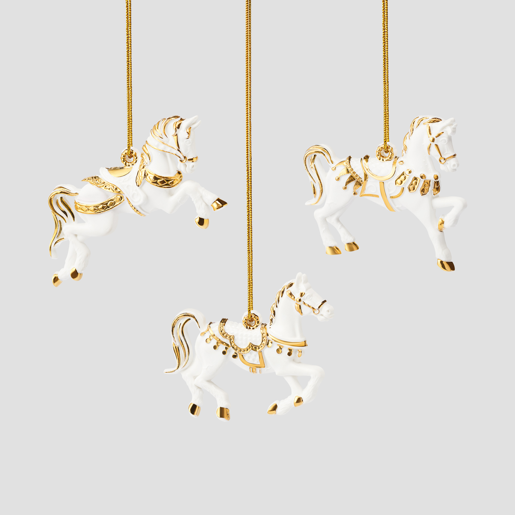 Набор из 3 елочных игрушек «Тройка белых лошадей» в подарочном пенале