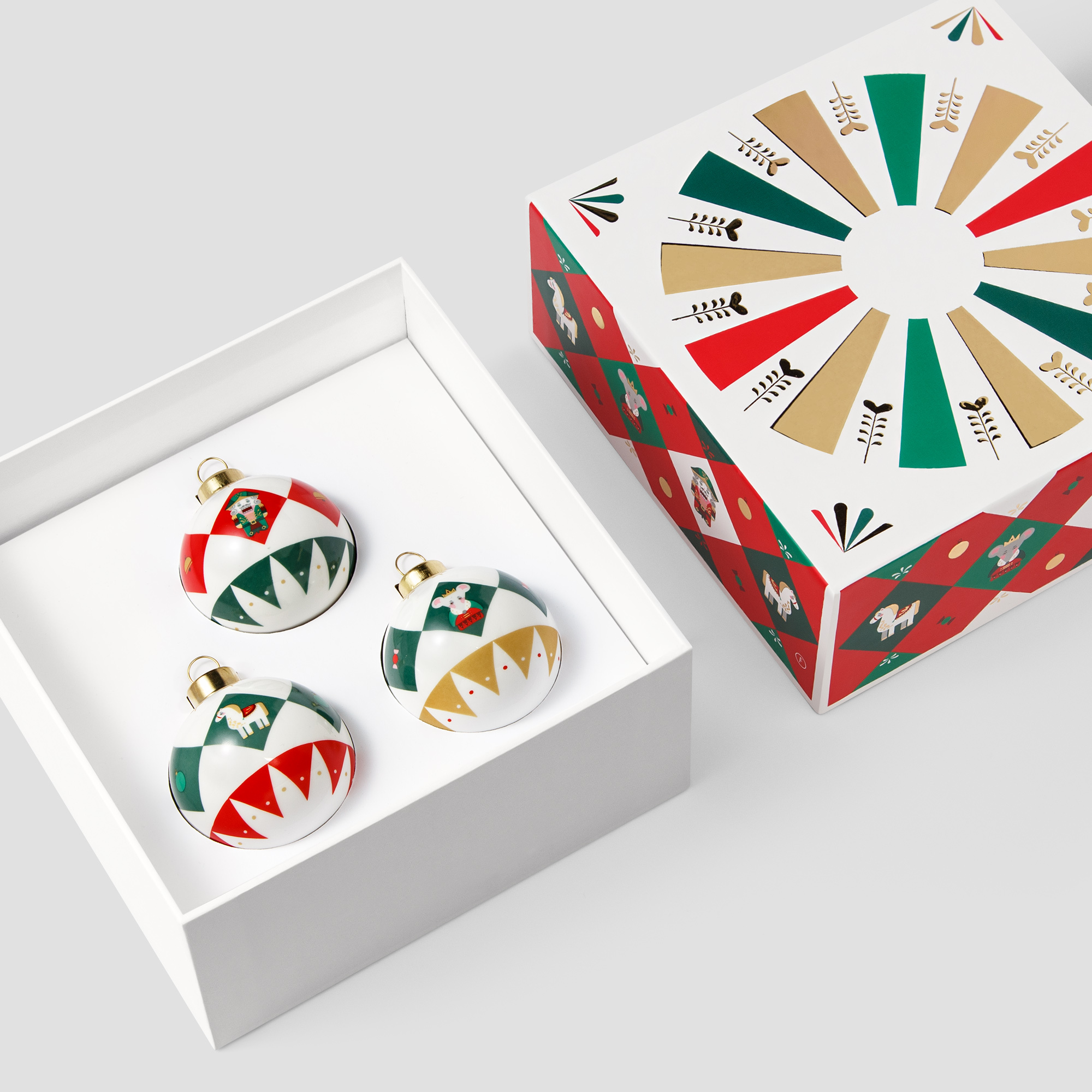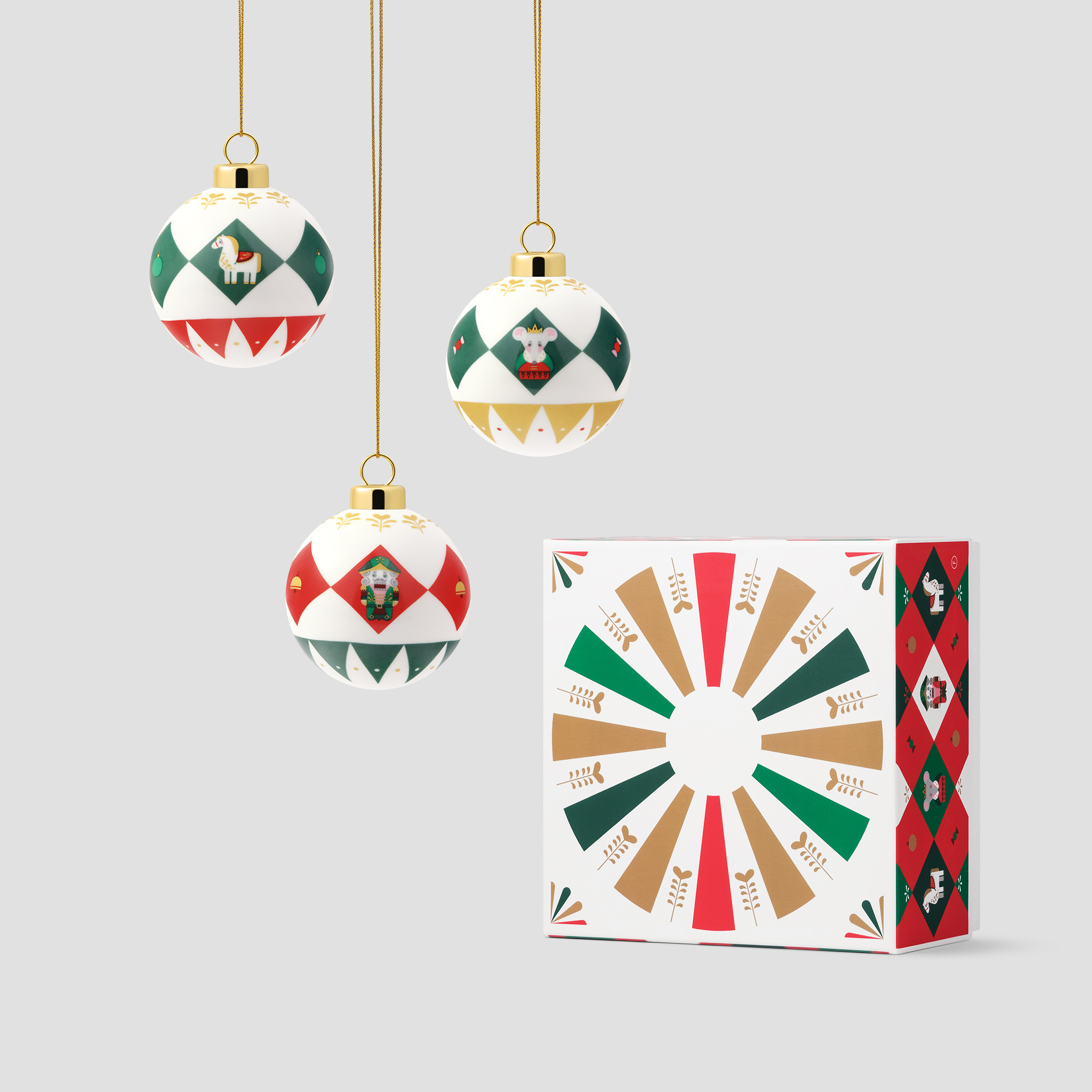 Набор из 3 елочных шаров «Щелкунчик рождественский» из одноименной коллекции поставляется в подарочной коробке «крышка-дно» с матовой ламинацией.
