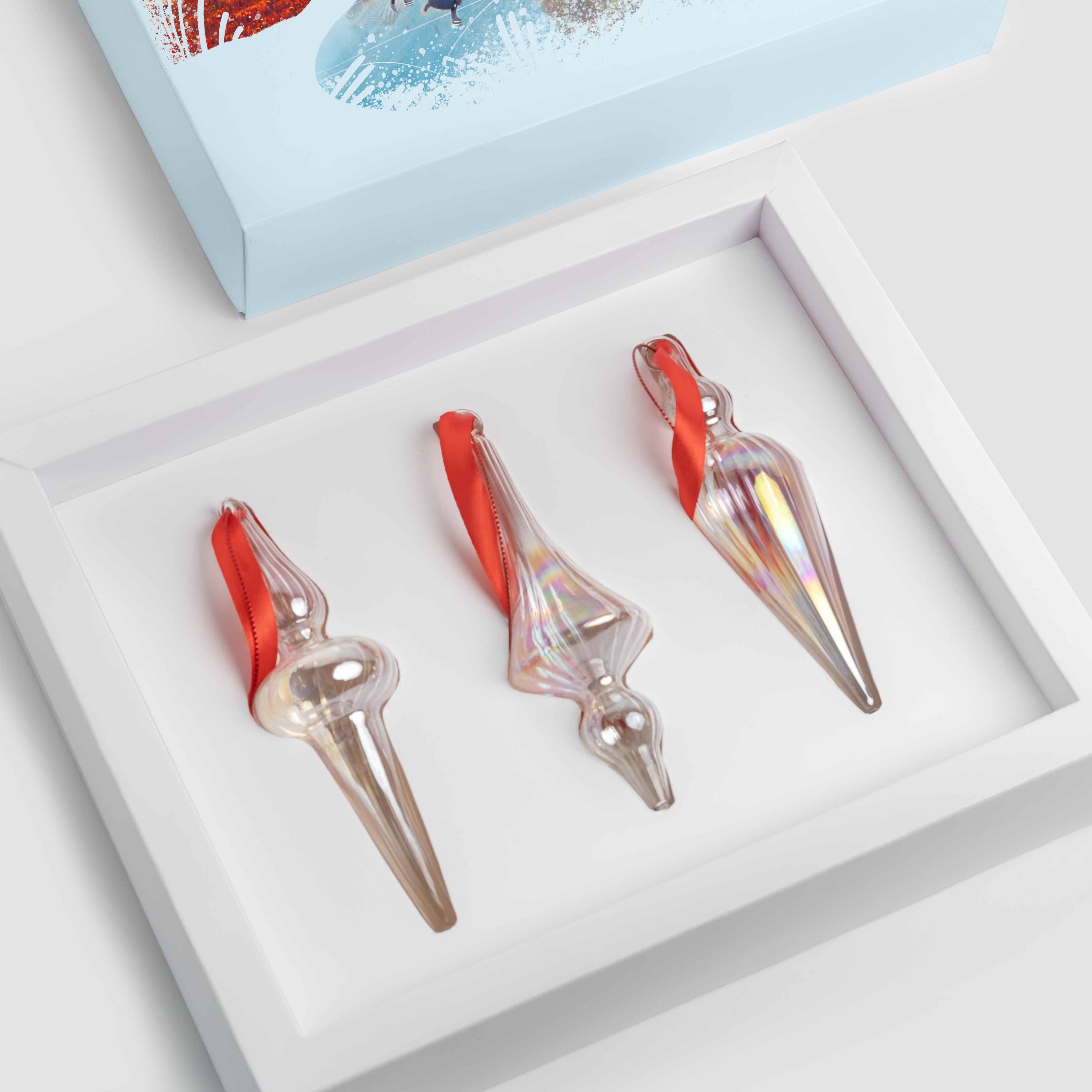 Набор из 3 елочных игрушек-сосулек Farforite «Главная елка страны» в подарочной коробке