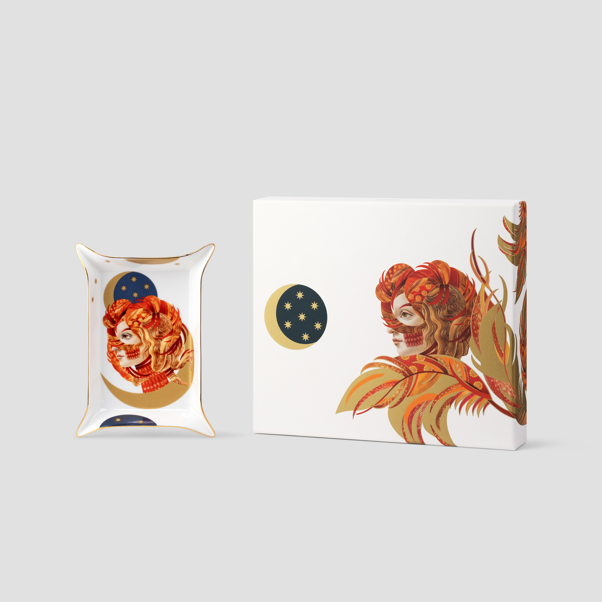 Коллекция «Жар-птица» создана совместно с театральной художницей и керамисткой Анастасией Курбатовой. Яркие образы словно оживают на фарфоре и становятся символом света и возрождения.